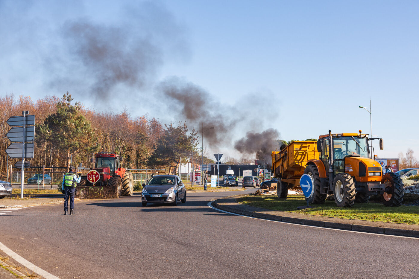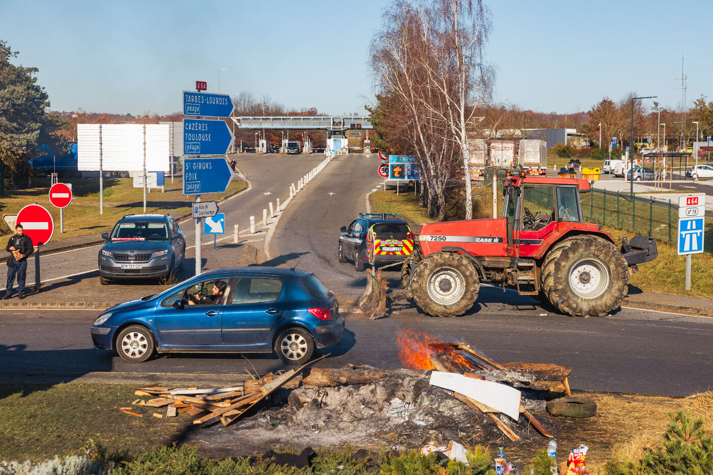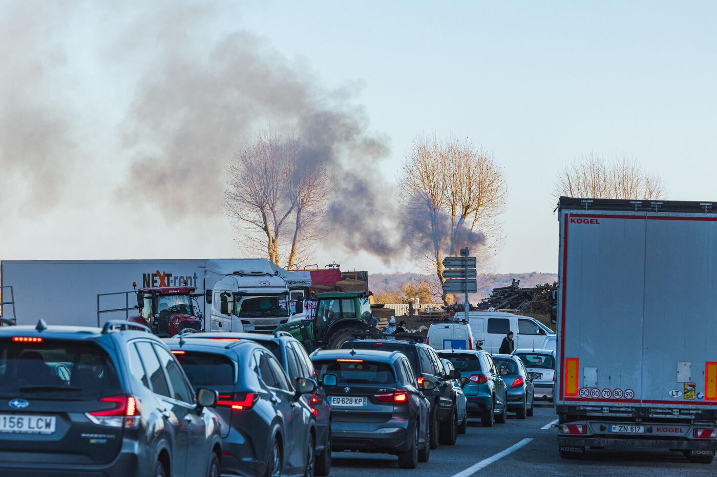 Farmers protest at roundabouts in Comminges against decisions to cull cattle herds amid the spread of contagious nodular dermatitis (CND). In southwestern France, December 13, 2025.