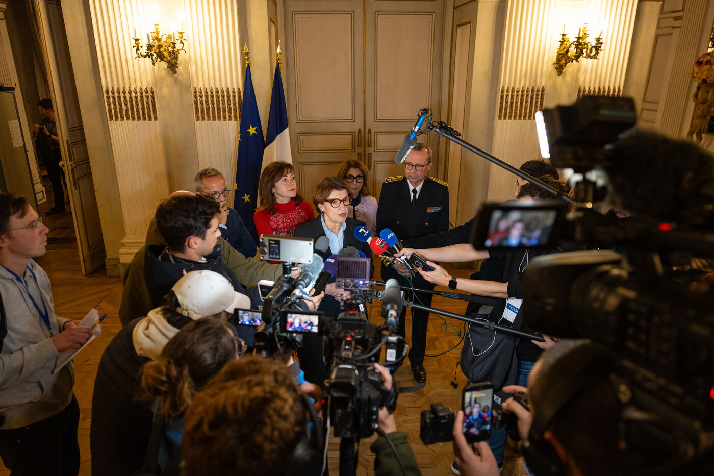 Tense press conference for Annie Genevard, Minister of Agriculture. In a tense context with French farmers affected by a contagious nodular dermatosis (CND) virus.