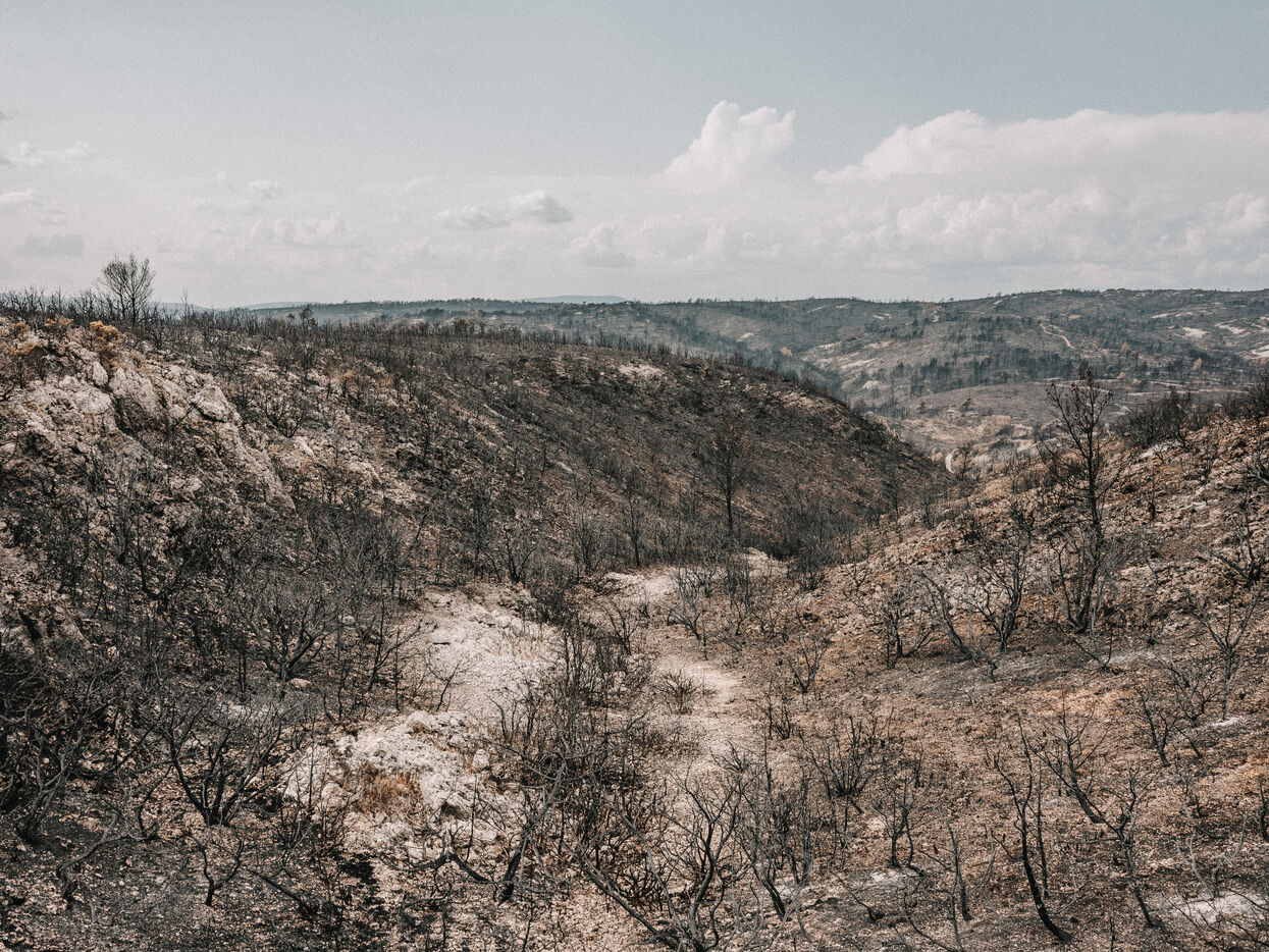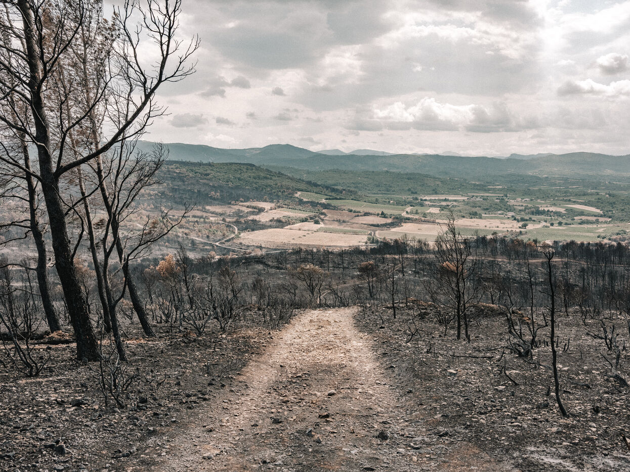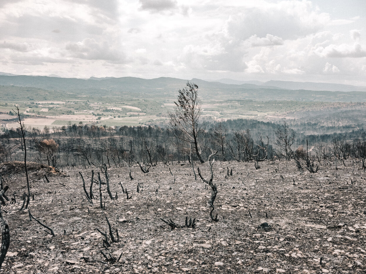 Landscapes of the Corbières Massif after the fires of August 2025. 17,000 hectares were burned in a few days, making this the largest fire in France in 80 years.
