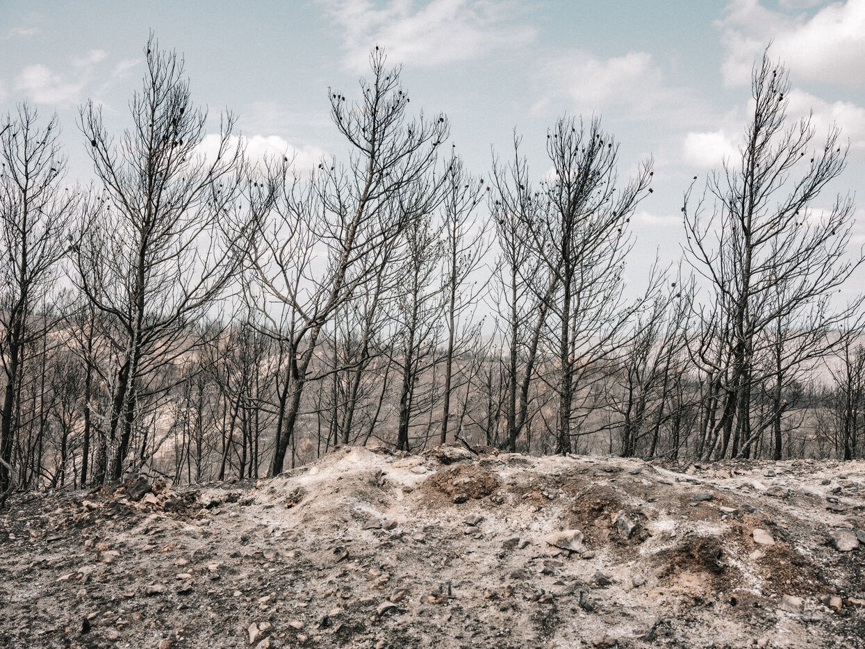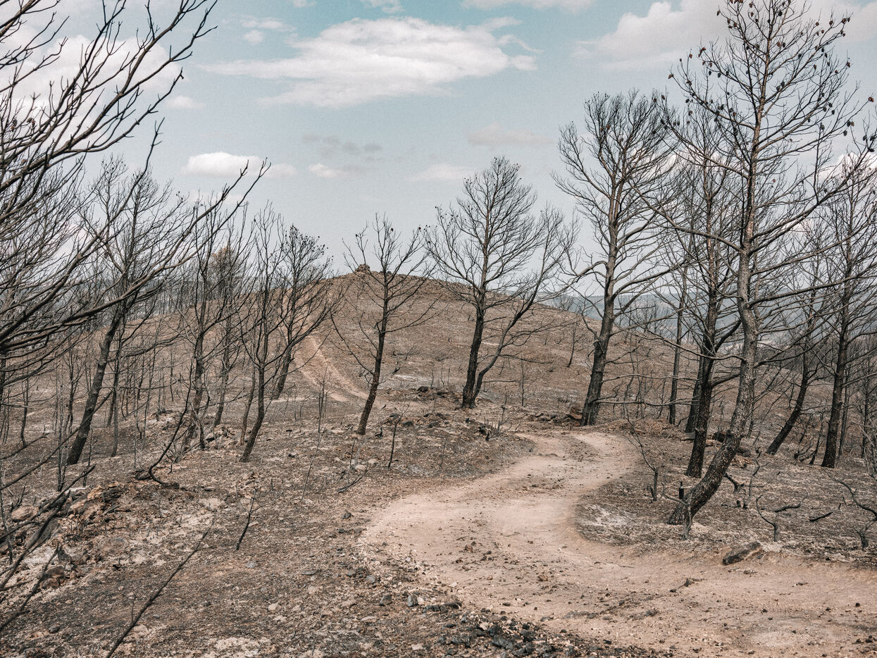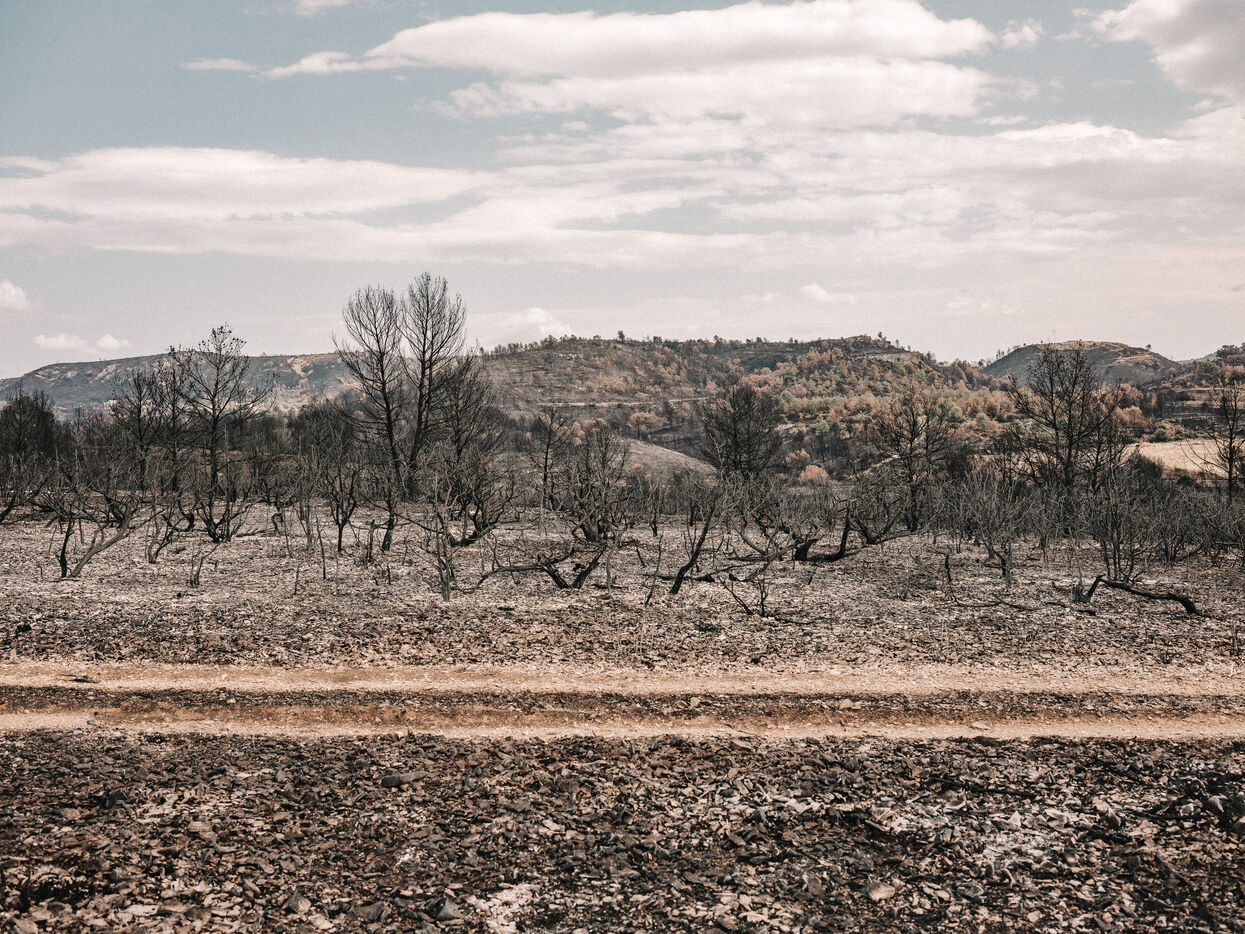 Landscapes of the Corbières Massif after the fires of August 2025. 17,000 hectares were burned in a few days, making this the largest fire in France in 80 years.