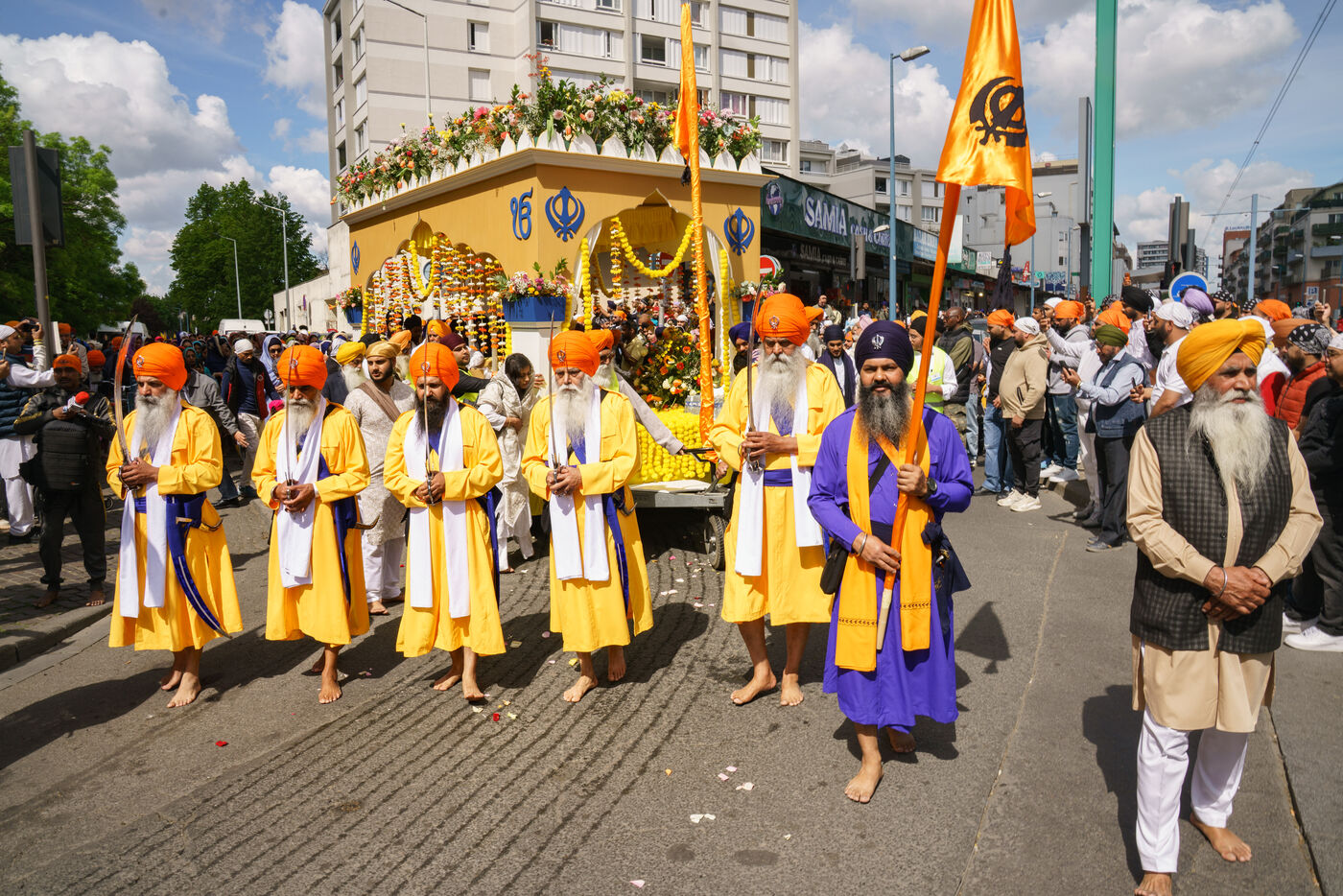 Generally celebrated on April 13 or 14 of the Gregorian calendar, the Gurdwara Singh Sabha temple in Bobigny—the largest Sikh temple in France—is organizing its Nagar Kirtan this year, a procession honoring the Guru Granth Sahib (the holy book of Sikhism), on April 19. Along with the procession, demonstrations of Gatka, the Sikh martial art of weaponry, and a large free meal will also be held.