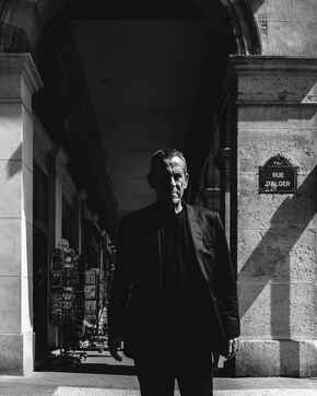 Portrait of Thierry Ardisson, a key figure in the French audiovisual landscape, program presenter, television producer, interviewer, creator of program concepts, advertising executive, entrepreneur, media personality, rue de Rivoli in Paris, France, August 3, 2018.