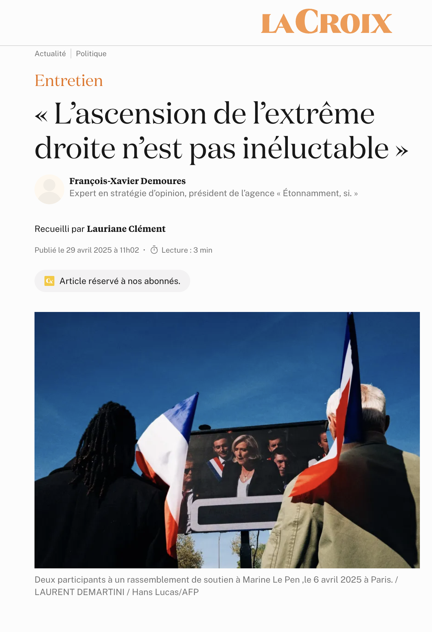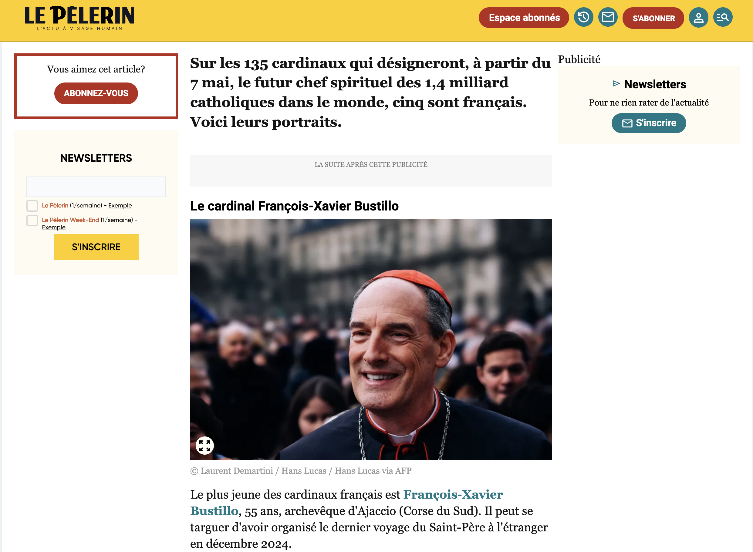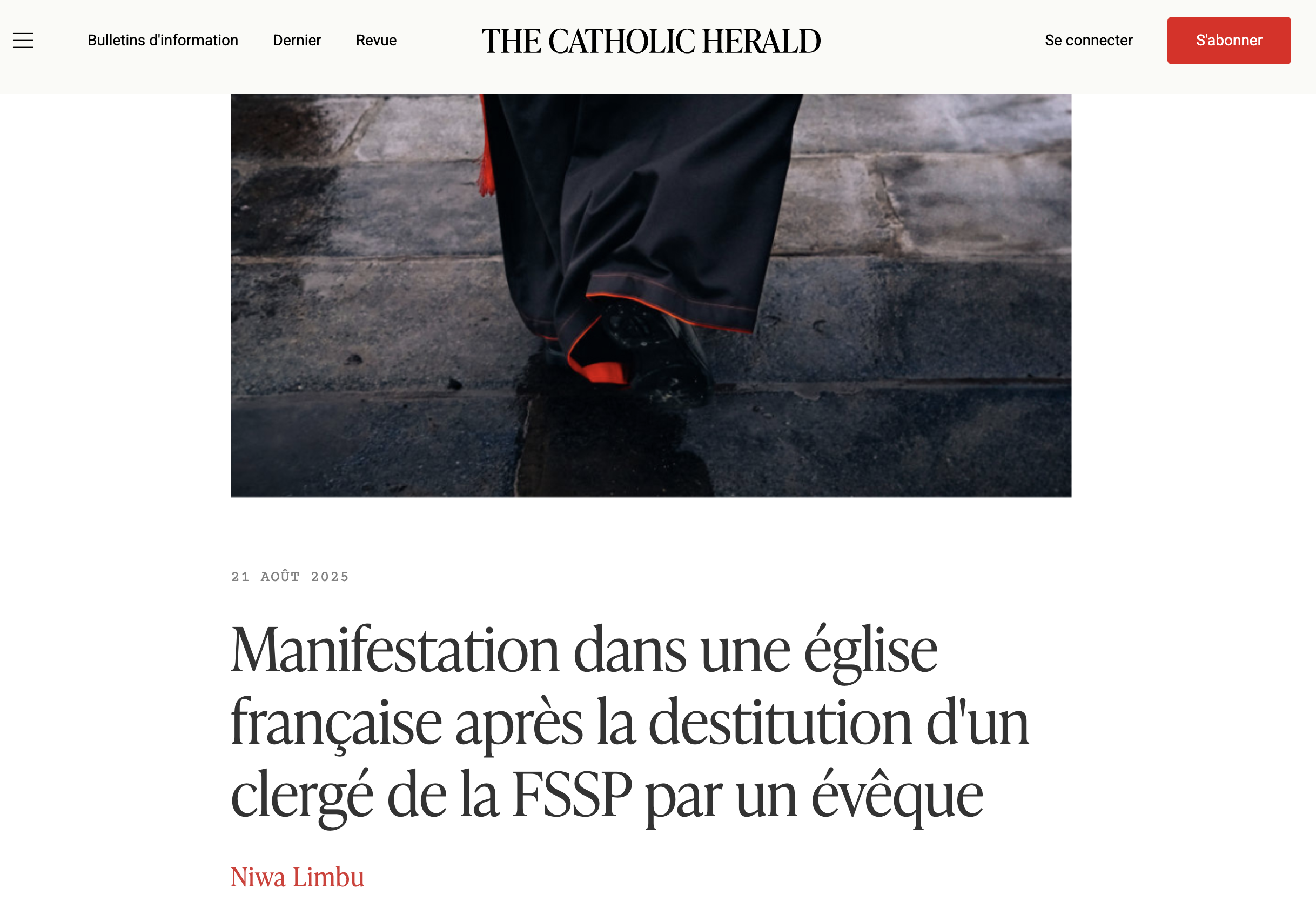 Laurent Demartini Publications Séries / Archive Culture — Paris — Politique — Société — Spiritualité — Sélection de séries Print – "Famille Chrétienne" – Cardinal François Bustillo Web "The Catholic Herald" Web "Le Temps " Web Le Pélerin Web ELLE Affaire abbé Pierre Print "L'Humanité" Web "Liberation" 1ier mai Web "La Croix" Web "Le Pélerin" Cardinal François Bustillo Web "Die Ziet" Web "Der Freitag" Print – « l’Humanité » – Seydi Ba des cités au barreau de Paris Print - "L'Humanité Magazine" - Stéphanie Roza Ouest-France : Avortement : vous vous êtes rendue à l’étranger pour une IVG ? Print – « l’Humanité » –Marc Lavoine Print - L'Humanité Magazine Print - L'Humanité - Joseph Paris et Yasser Louati Print - L'Humanité - Francesca Pollock Libération : Où et quand manifester samedi 7 septembre contre «le coup de force de Macron» Financial Times : Le régulateur français retire sa licence à la chaîne de télévision C8 de Vincent Bolloré