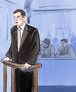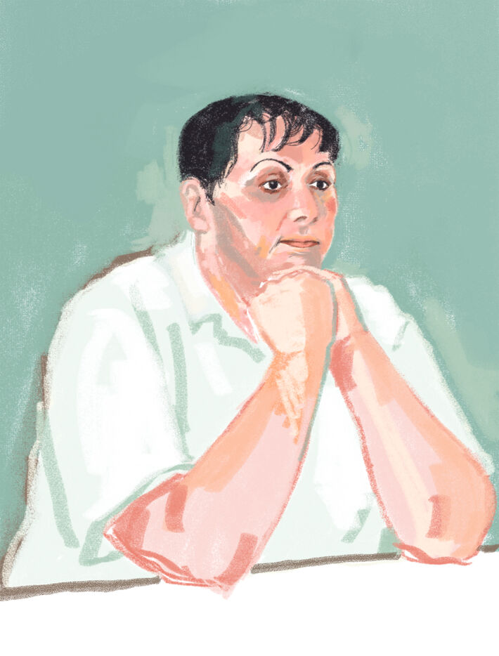 Drawings based on archives and photographs from the trial of the Outreau case, in which several people were accused of sexually assaulting minors, Strasbourg, France, 2024-05-16.