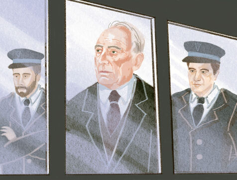 Drawings based on archives and photographs from the trial of Maurice Papon, accused of crimes against humanity and tried at the Gironde Assize Court from October 8, 1997 to April 2, 1998.