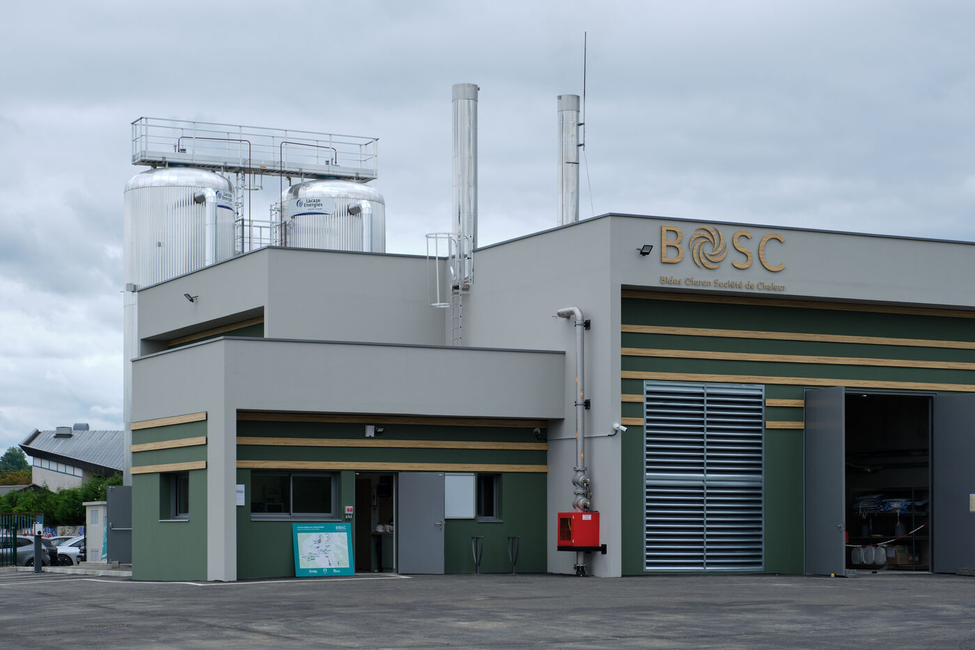 Oloron-Sainte-Marie, 6 juin 2025 – Inauguration de la nouvelle chaufferie bois-énergie et du réseau de chaleur bas-carbone d'Oloron-Sainte-Marie et de Bidos. L'installation fournira une énergie propre, locale et durable en valorisant des résidus issus de l'exploitation forestière provenant d'un rayon de 100 km. L'approvisionnement en eau chaude et chauffage de bâtiments publics et privés – dont un hôpital, des écoles, des lycées et des sites industriels – doit permettre d'économiser l'équivalent de 4700 tonnes de CO2 par an. Le projet a nécessité la construction d'une chaufferie, mais aussi d'un réseau de canalisations souterrain de 8,2 km.