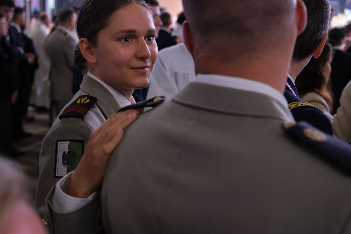 Un an plus tard, Hugo revient au Pèlerinage Militaire International, prêt à recevoir la confirmation. À ses côtés se trouve Manon, sa marraine et caporale dans le même régiment, qui l’accompagne tout au long de cette démarche spirituelle. Lors de cette messe, 205 militaires ont étés baptisés et 500 ont reçu la confirmation.