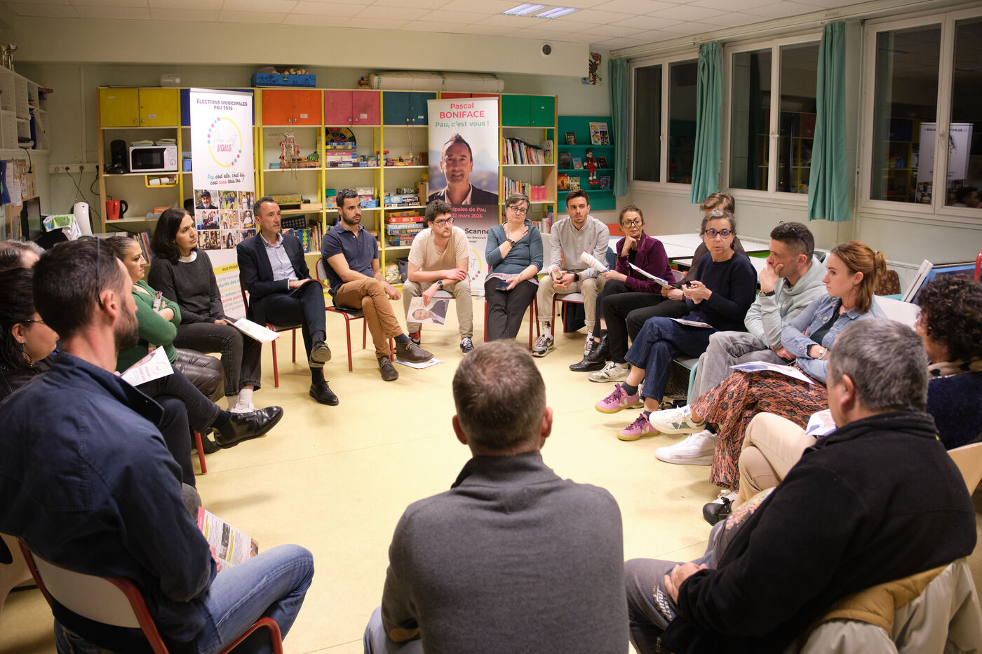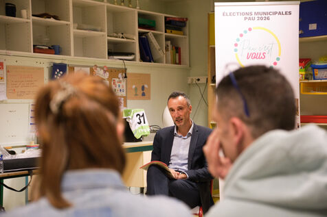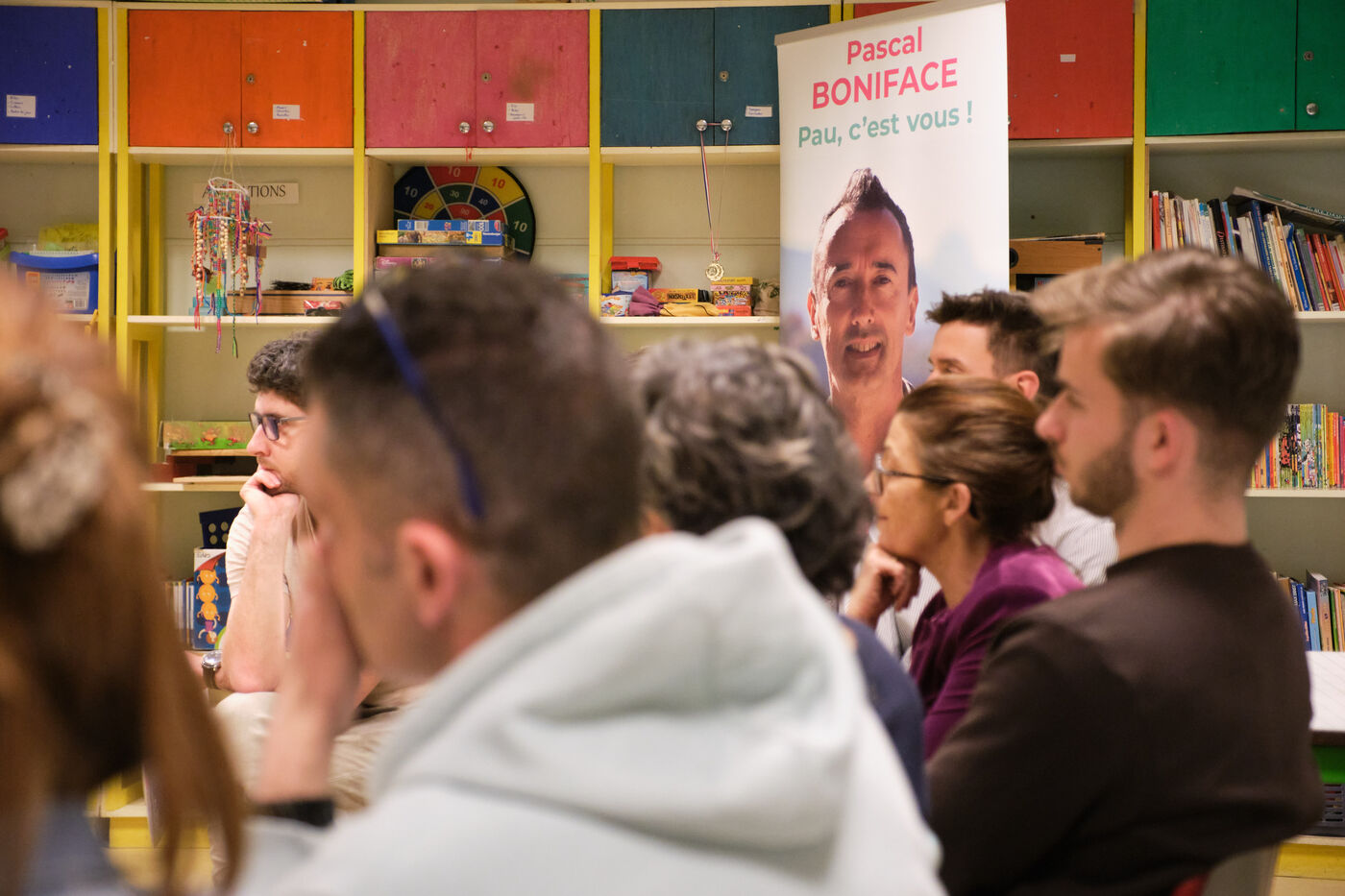 Pau, February 24, 2026 – Pascal Boniface, candidate in the 2026 municipal elections and for the mayoralty of Pau, held a public meeting with several members of his team before a small audience in a community room of a primary school.