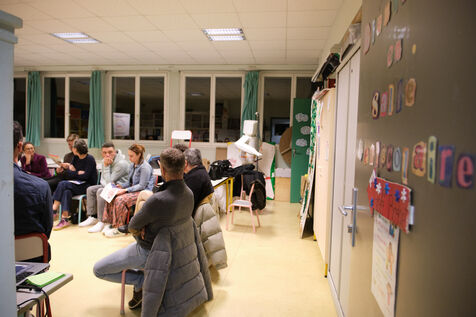Pau, 24 février 2026 - Pascal Boniface, candidat aux élections municipales 2026 et à la mairie de Pau, a tenu une réunion publique avec plusieurs membres de son équipe devant une petite audience dans une salle périscolaire d'une école primaire.