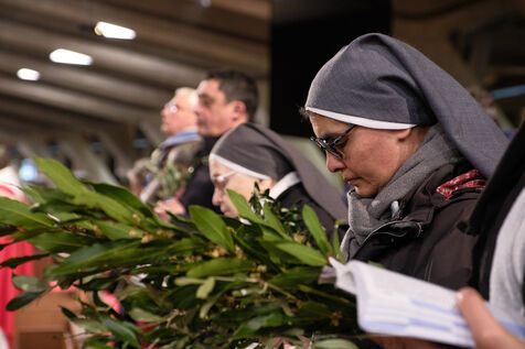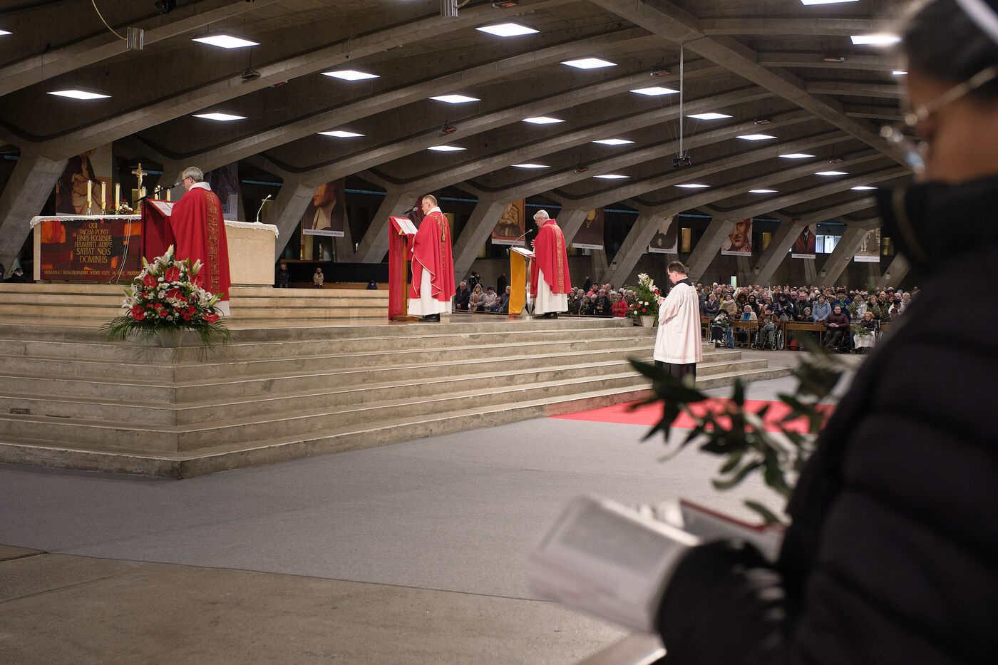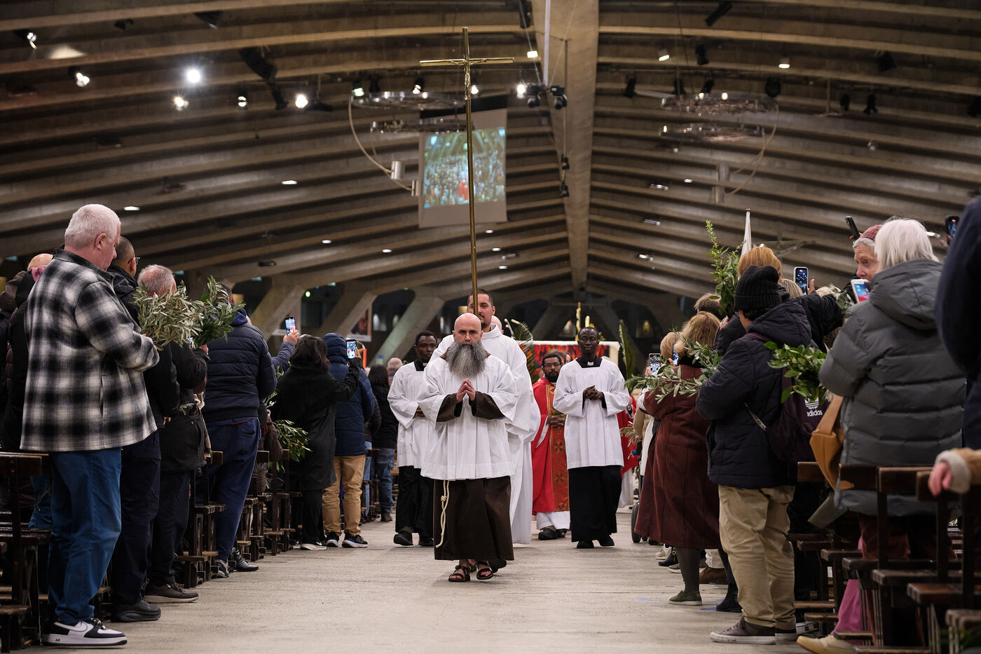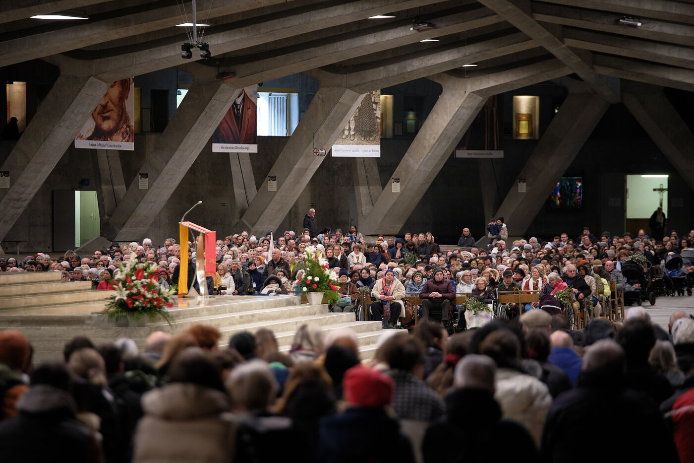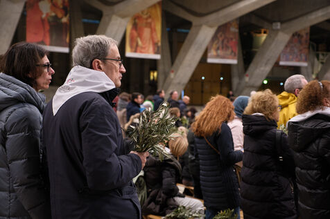 Lourdes, March 29, 2026 – Whorshippers gathered in the Basilica of Saint Pius X to attend the Palm Sunday Mass, celebrated by Father Michel Daubanes, rector of the Sanctuary of Our Lady of Lourdes.