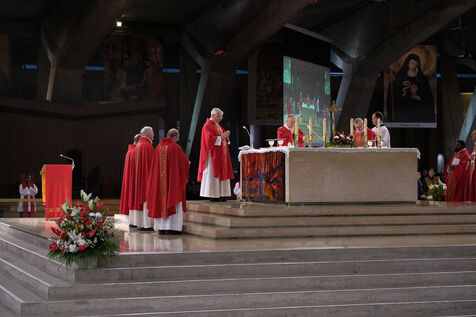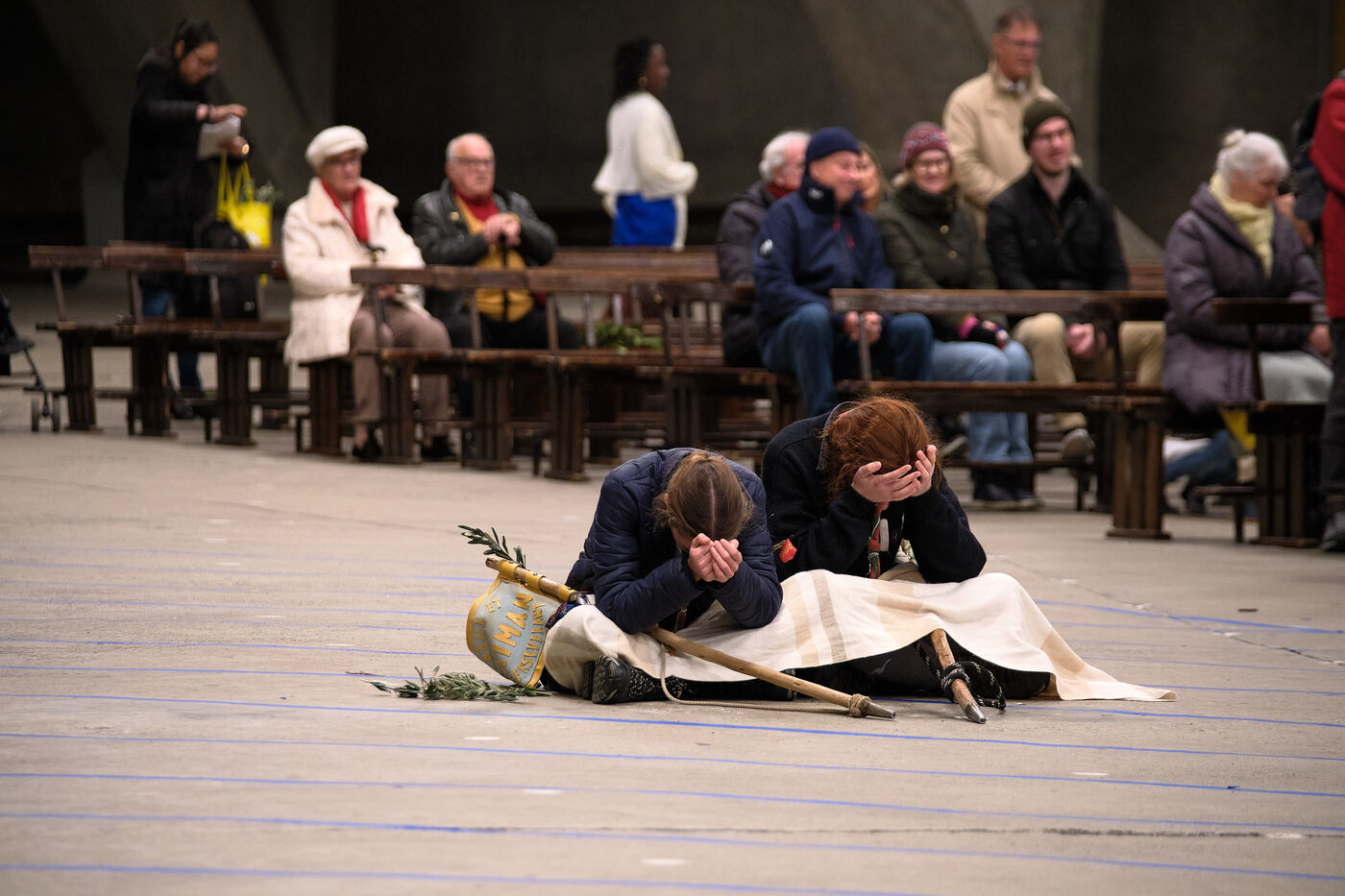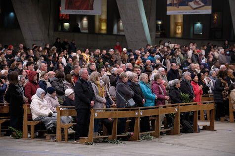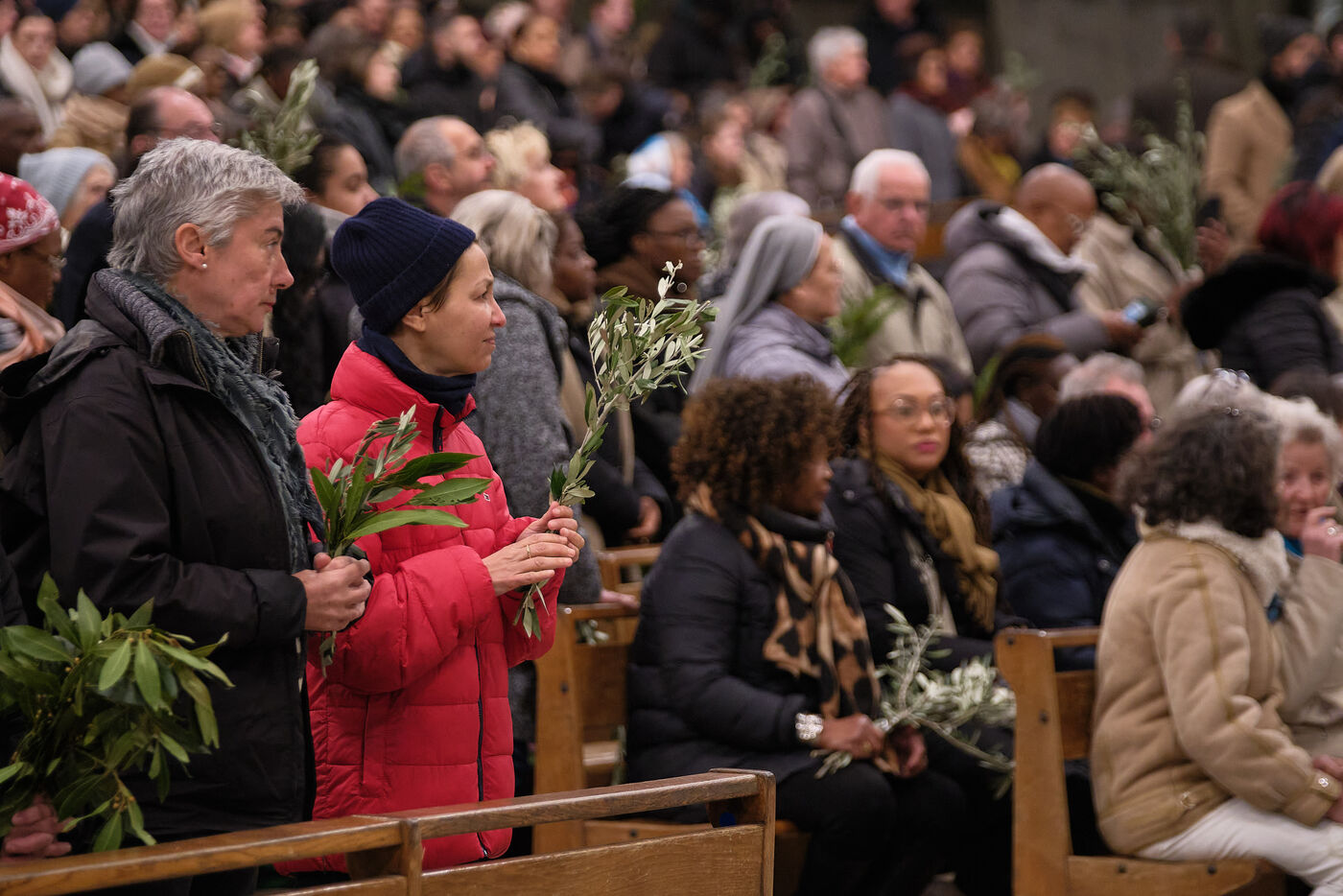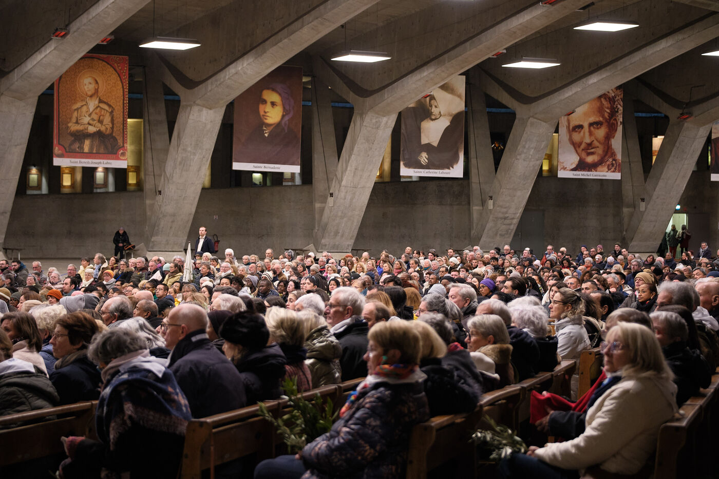 Lourdes, March 29, 2026 – Whorshippers gathered in the Basilica of Saint Pius X to attend the Palm Sunday Mass, celebrated by Father Michel Daubanes, rector of the Sanctuary of Our Lady of Lourdes.