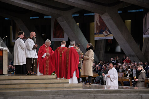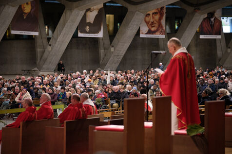 Lourdes, 29 Mars 2026 - De nombreux fidèles se sont rassemblés dans la Basilique Saint-Pie-X pour assister à la messe des Rameaux, célébrée par le Père Michel Daubanes, recteur du sanctuaire de Notre-Dame de Lourdes.
