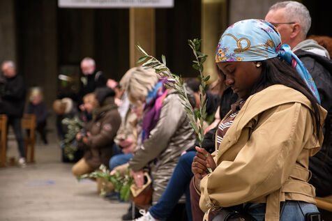 Whorshippers celebrate Palm Sunday in Lourdes