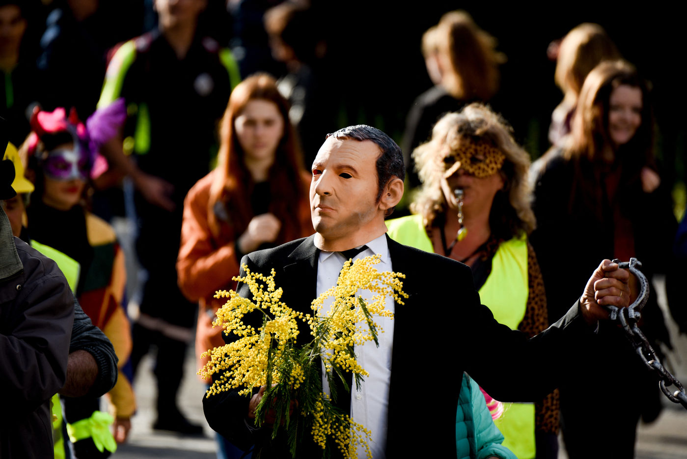 Traditional carnival, carnival biarnès (carnival Bearn) which ended in Pau on March 2, 2019 had invited the news in his parade. Often irreverent between bad faith and excess, twenty yellow vests were invited in the parade with a mask of the President of the Republic, Emmanuel Macron and Marianne chained. King Sent Pancard taken to the stake was wearing a yellow vest with the inscription "Emmanuel Quaresma demission"