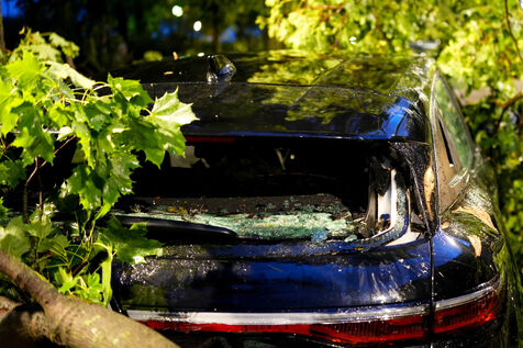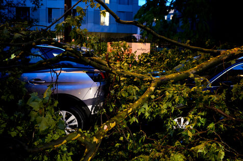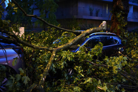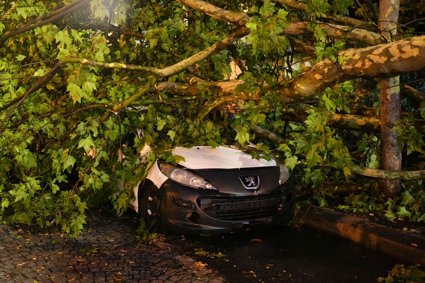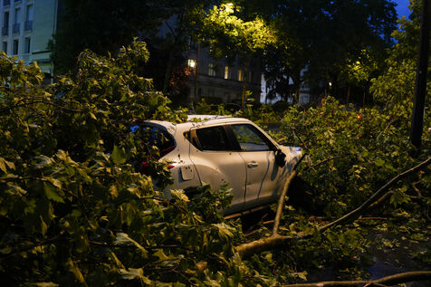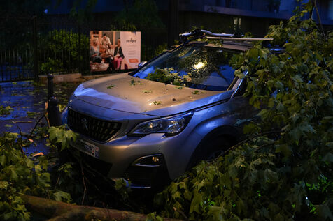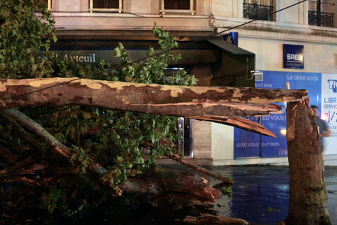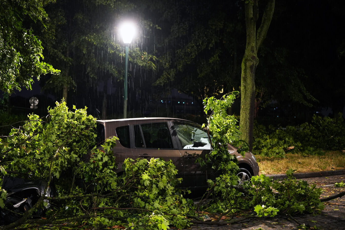France - Paris - Weather - This Wednesday, June 26, 2025, extensive damage occurred in Paris's 16th arrondissement, at Porte d'Auteuil, with the passage of a thunderstorm accompanied by a violent tornado. Gale force winds, storms... trees uprooted, cars buried...