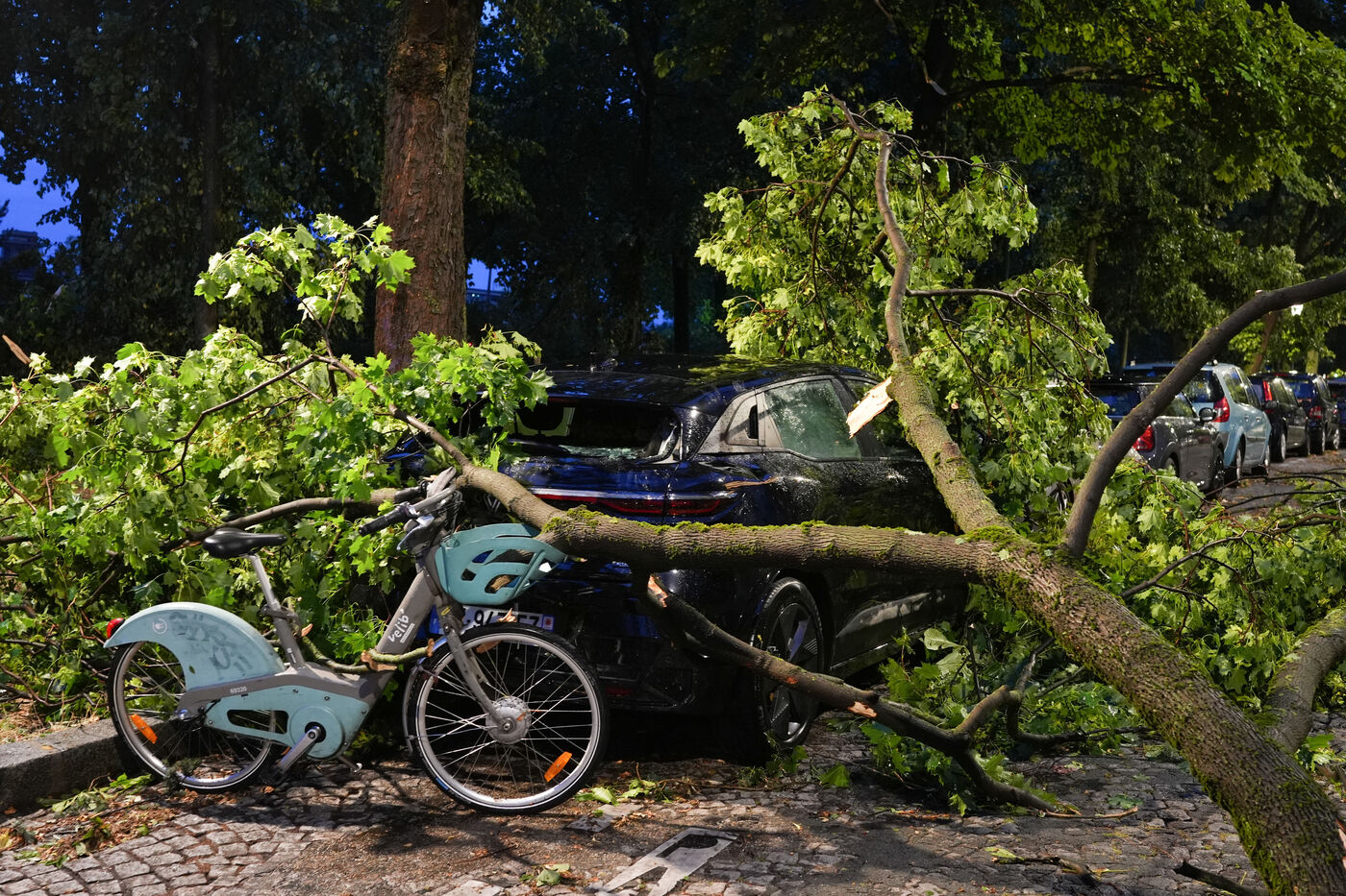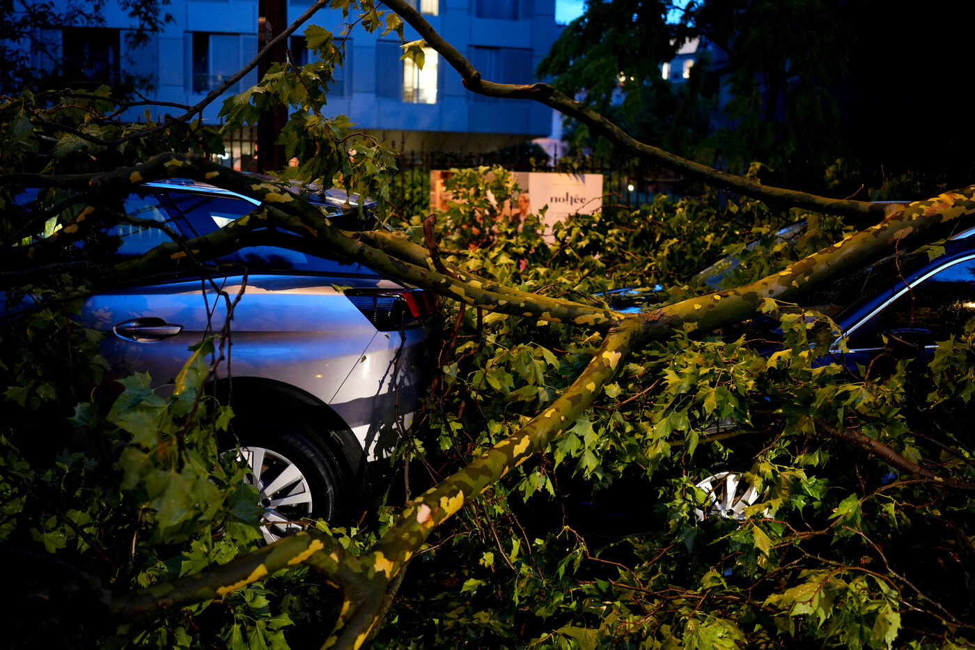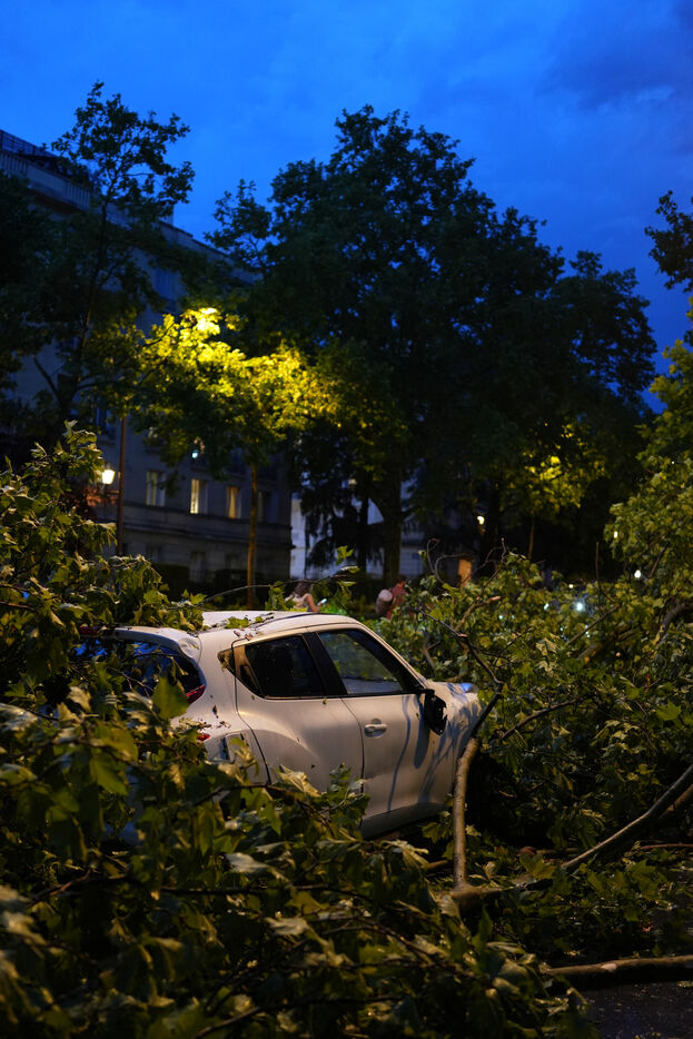 France - Paris - meteo - ce mercredi 26 juin 2025, de nombreux degats dans Paris 16eme, Porte d'Auteuil avec le passage d'un orage accompagne d'une violente tornade. Coup de vent, tempete...arbres deracines, voitures enselevies...