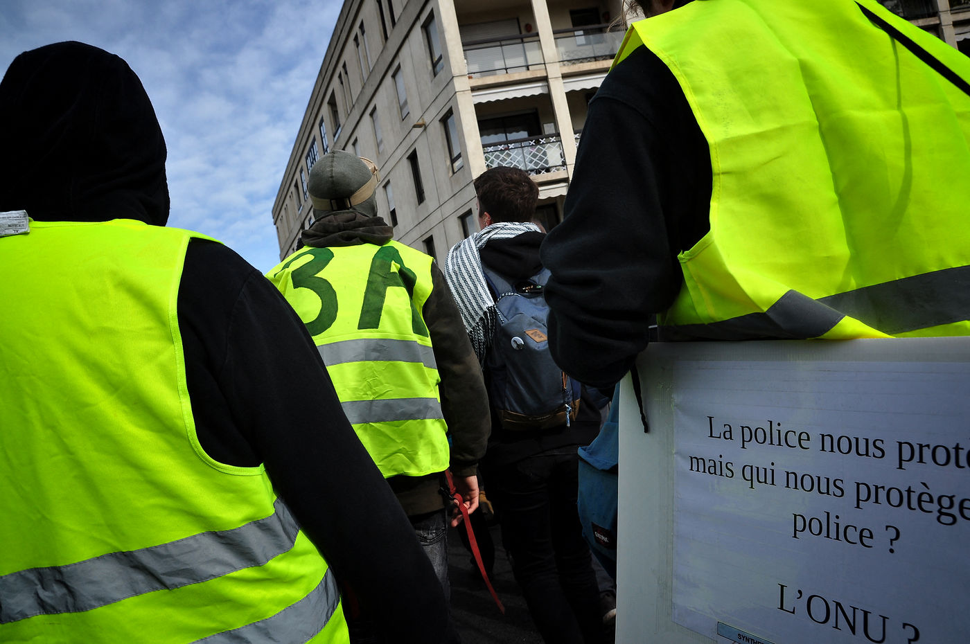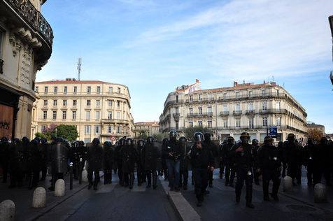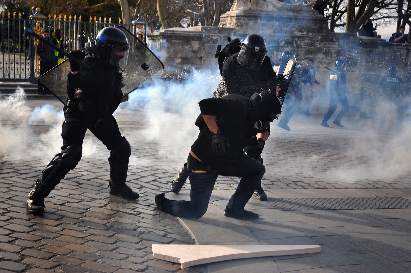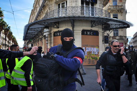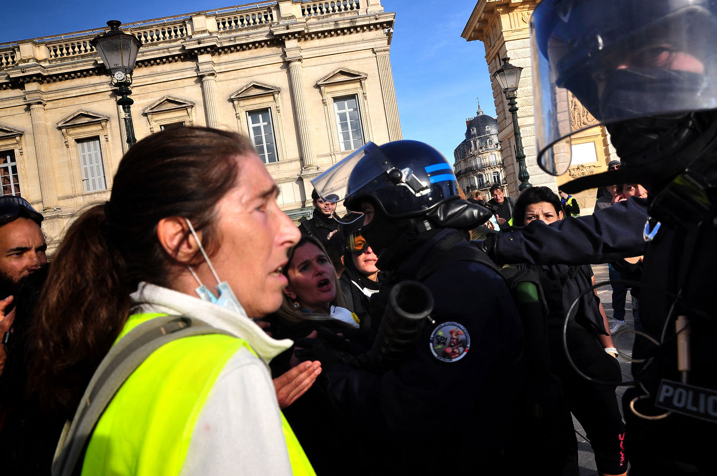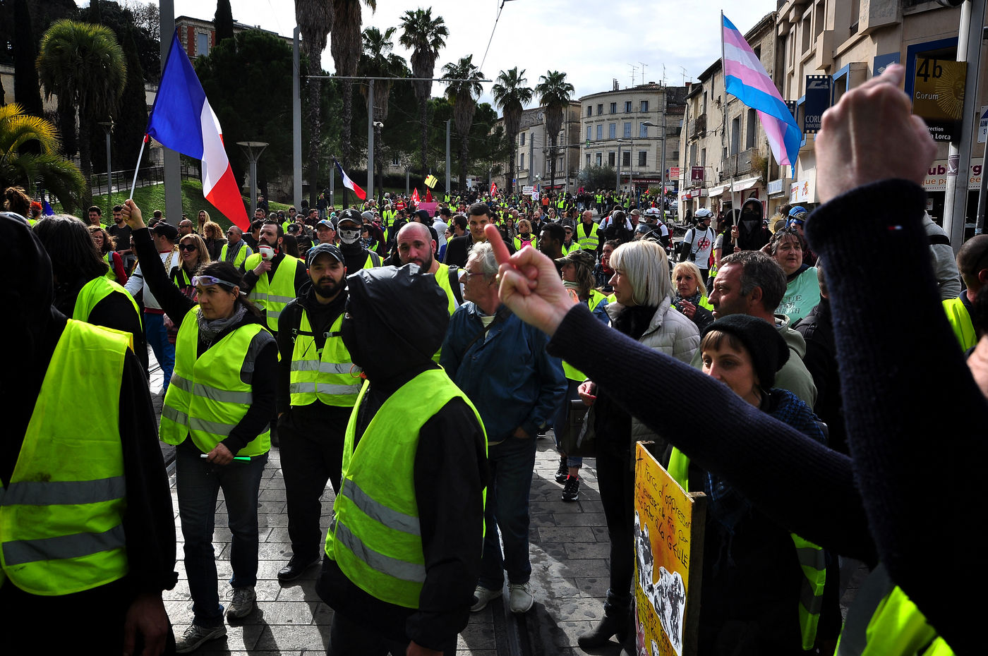 Montpellier, place de la comédie. Dès le début d'après-midi, on est dans le dur. Vers 14h30, alors que le défilé sapprête à partir, la brigade anti-criminalité fait une inhabituelle apparition à cette heure, ce qui provoque la colère des gilets jaunes, qui les chassent à coup d'invectives. La suite est, elle, habituelle, entre défilé pacifique, casse et répression policière qui s'accentue au fil des manifestations.