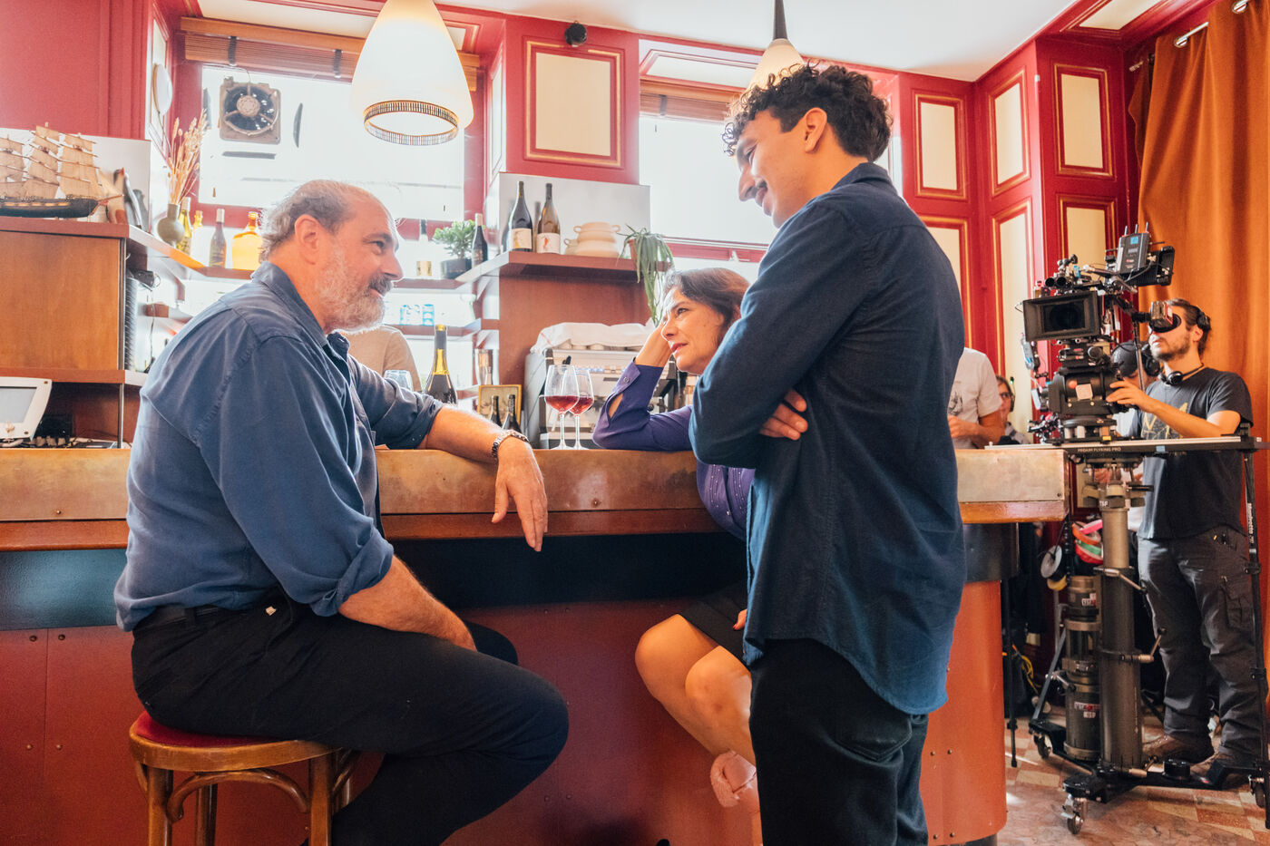 Set photographs from the filming of Amine Adjina's movie LA PETITE CUISINE DE MEHDI.