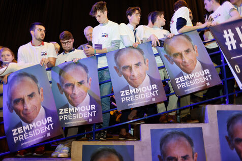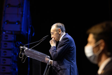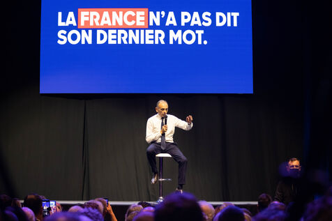 Eric Zemmour, leader of the Reconquete party and future presidential candidate, delivers a speech during a meeting at the Zenith in Saint-Herblain near Nantes.