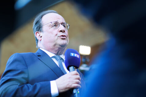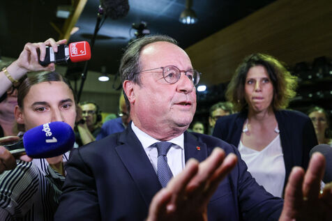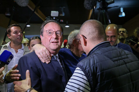 Former French president François Hollande newly elected Member of Parliament delivers a speech in an election night event following the first results of the second round of France's legislative election in Tulle on July 7, 2024.