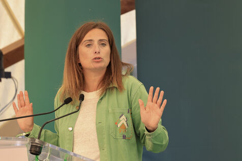 Marine Tondelier, national secretary of the Ecologistes party at the party s Summer Days (JDE 2024) in Tours, central France on 22 August 2024.