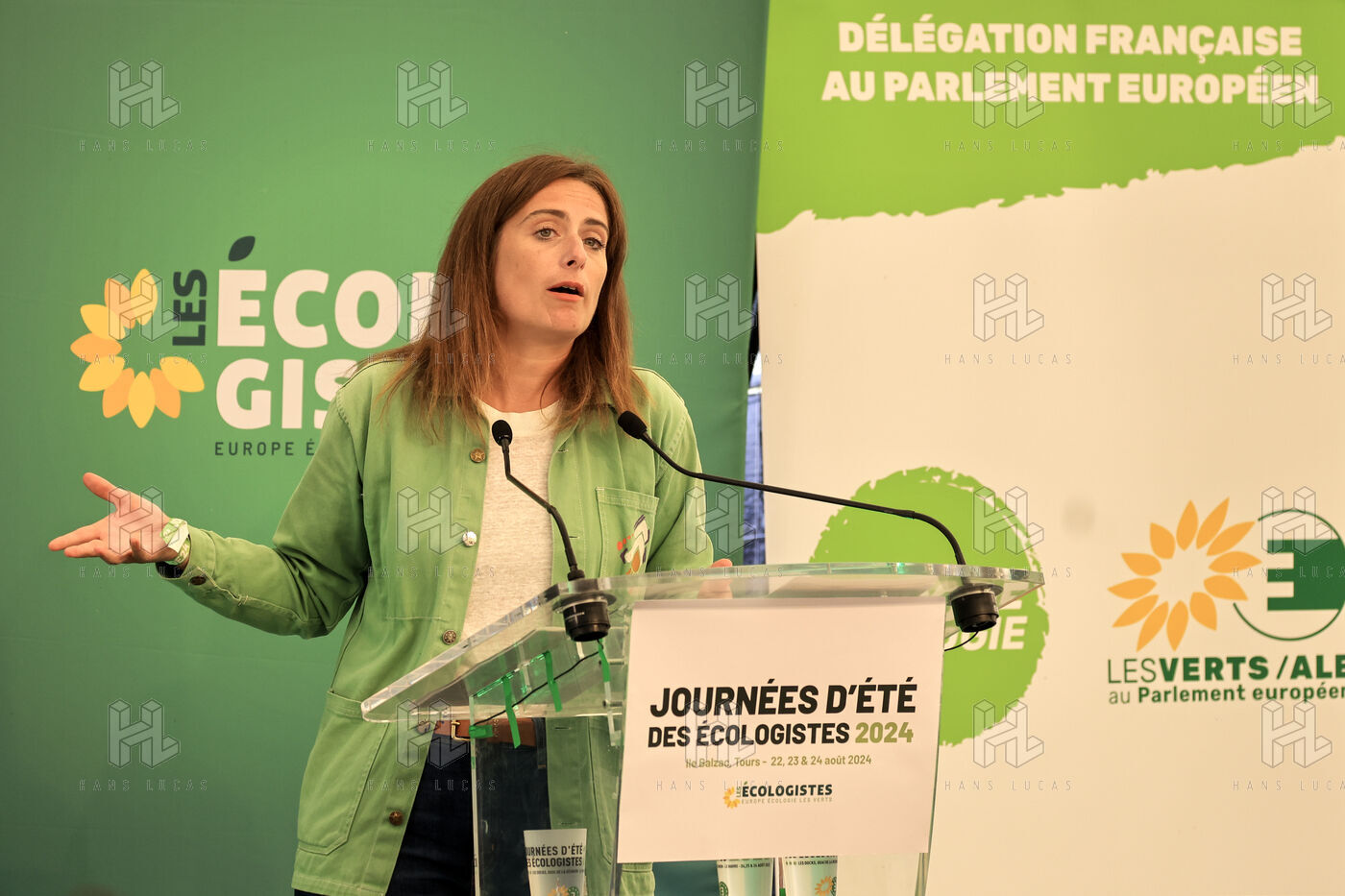 Marine Tondelier, secretaire nationale du parti les Ecologistes lors des Journees d ete du parti (JDE 2024) a Tours le 22 aout 2024.