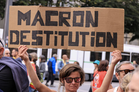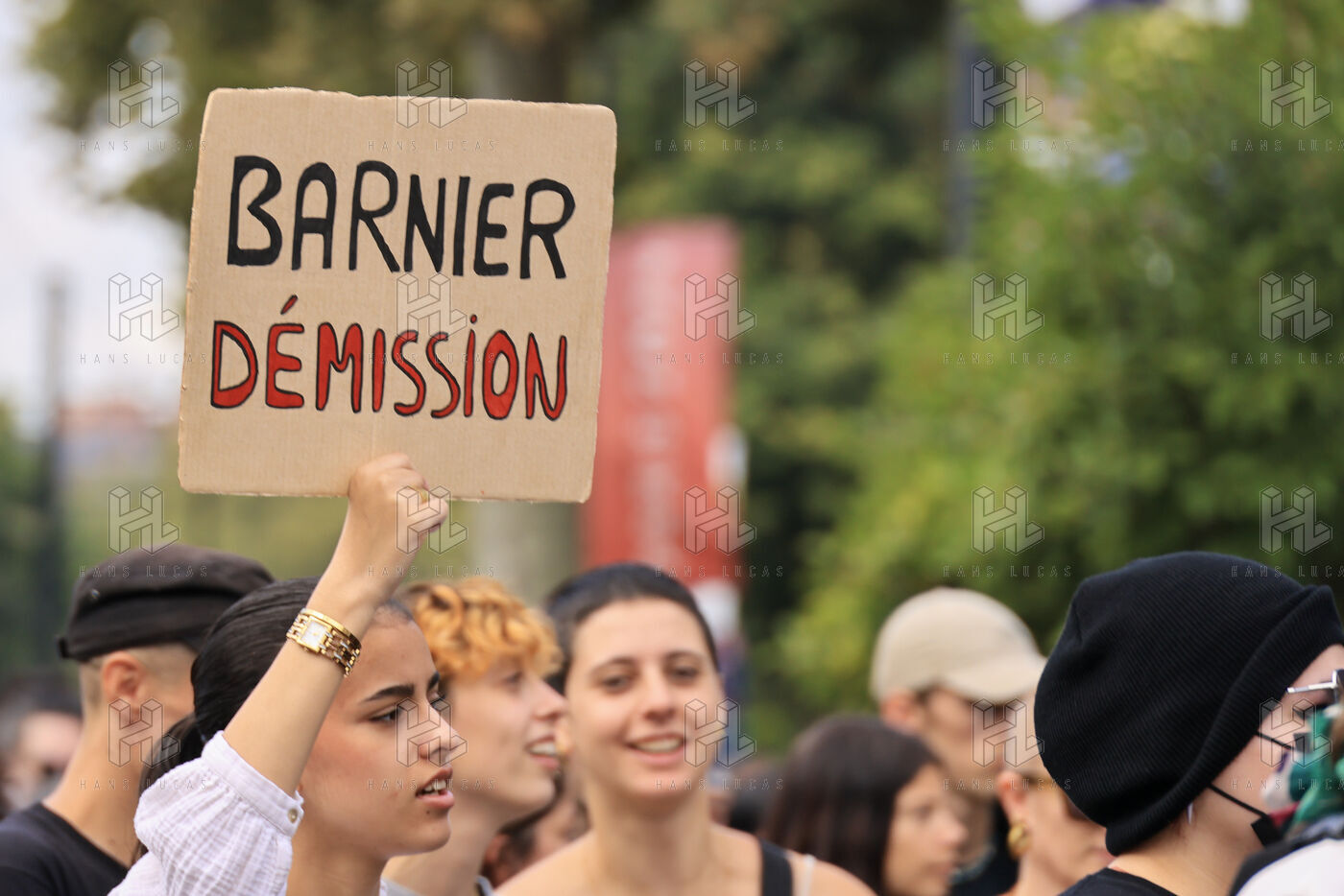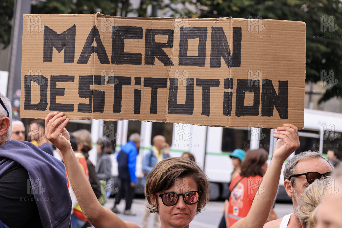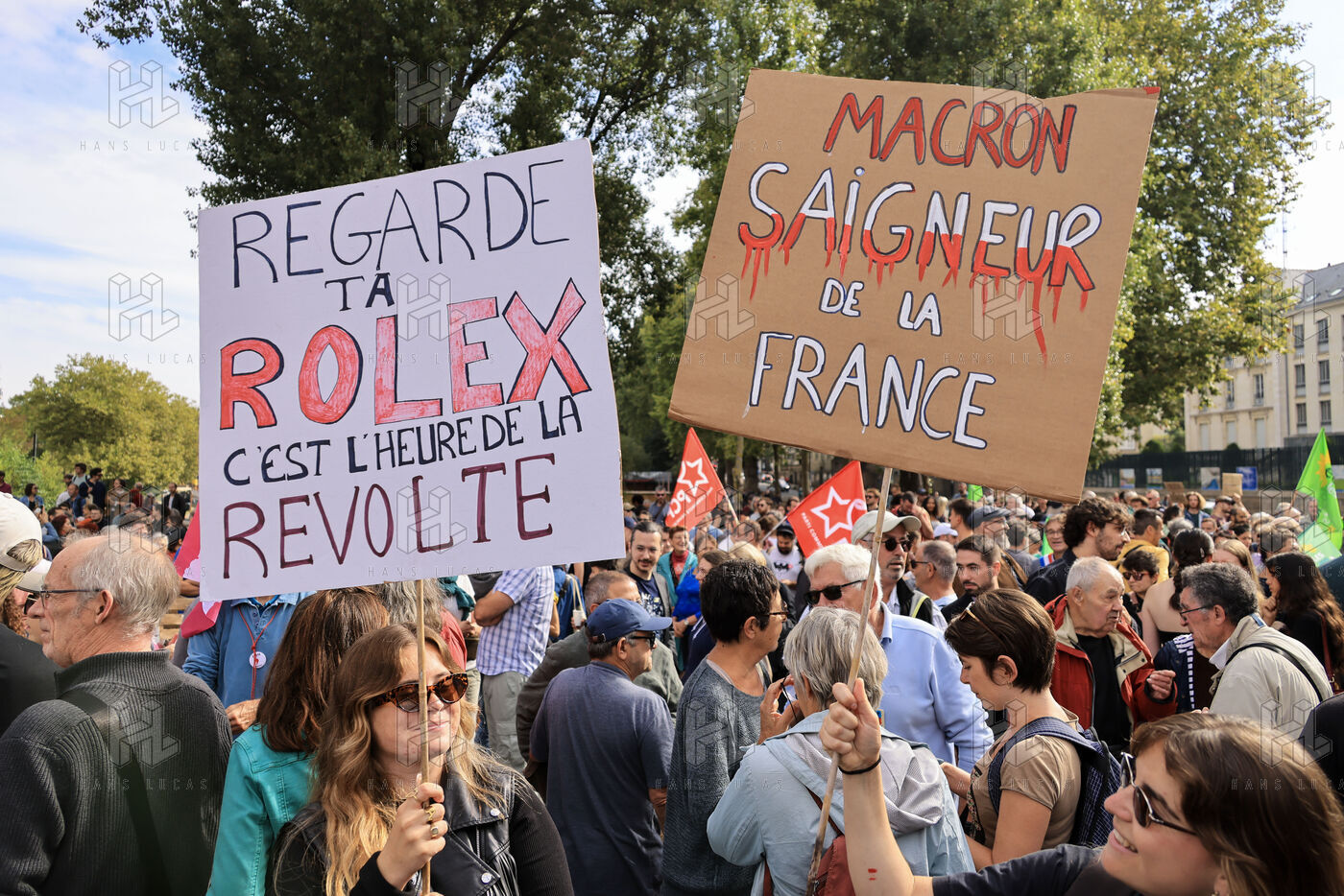 Rally and demonstration called by trade unions and left-wing parties against the appointment of Michel Barnier as Prime Minister. Nantes, western France, September 7, 2024.