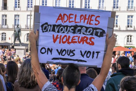 Gathering in support of Gisele Pelicot at the call of feminist collectives, associations and activists, Nantes, western France, September 14, 2024.