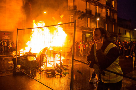 Bordeaux: acte 6 des Gilets jaunes, barricades en feu.