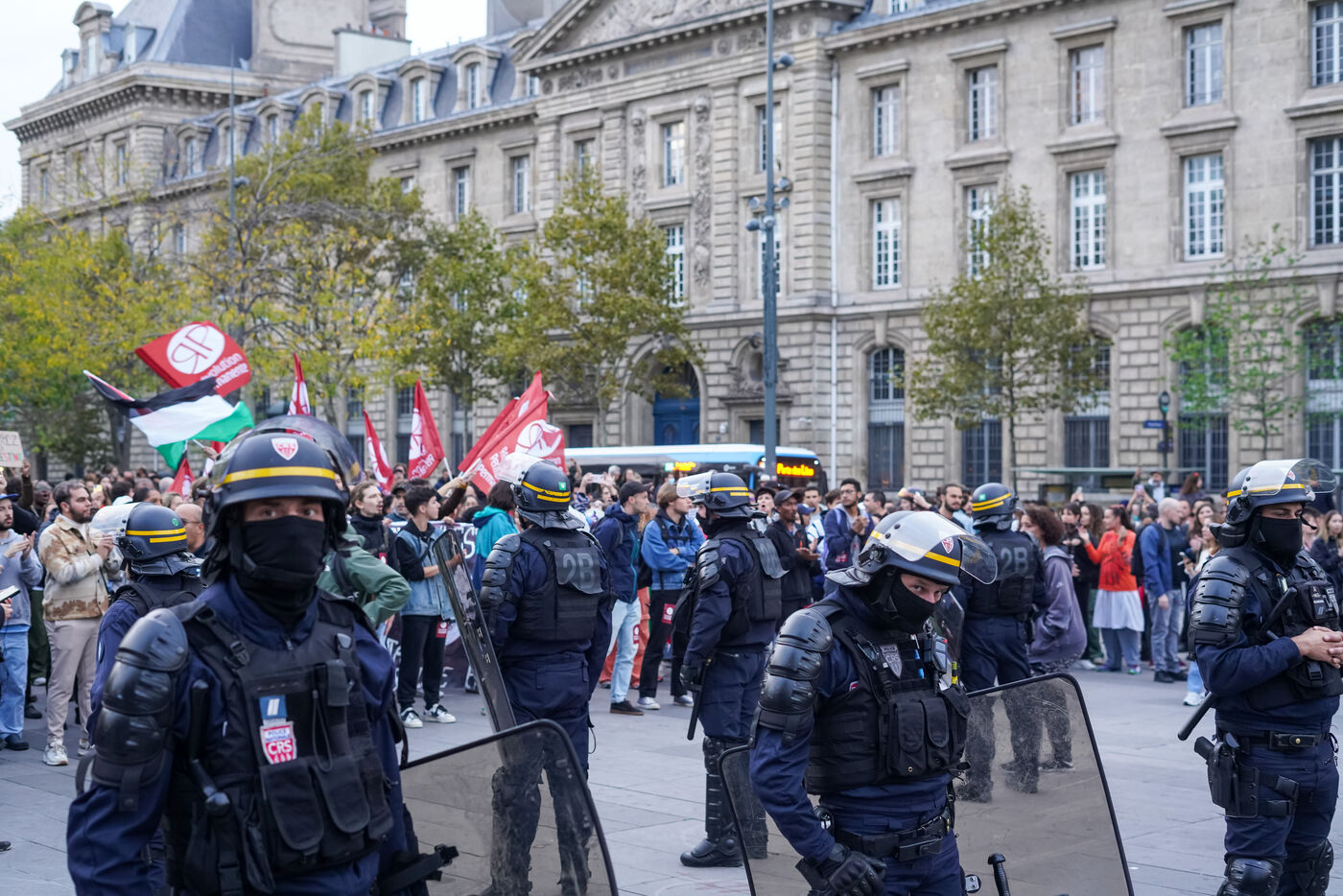 Le 19 octobre 2023, des manifestants se rassemblent place de la République à Paris pour exprimer leur soutien au peuple palestinien et demander un cessez-le-feu dans la bande de Gaza. La mobilisation intervient dans le contexte de l’escalade militaire entre Israël et le Hamas déclenchée après les attaques du 7 octobre 2023. Des drapeaux palestiniens et des pancartes appelant à la paix et à la solidarité avec Gaza sont visibles parmi la foule réunie autour de la statue de la République.