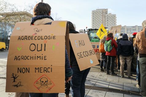 Protest in Rennes on Saturday, January 10, by several agricultural groups, including the Ille-et-Vilaine farmers' union, the fishing federation, and the collective supporting victims of pesticides, to reclaim the revision of the SAGE text established to protect water and combat water pollution from pesticides.