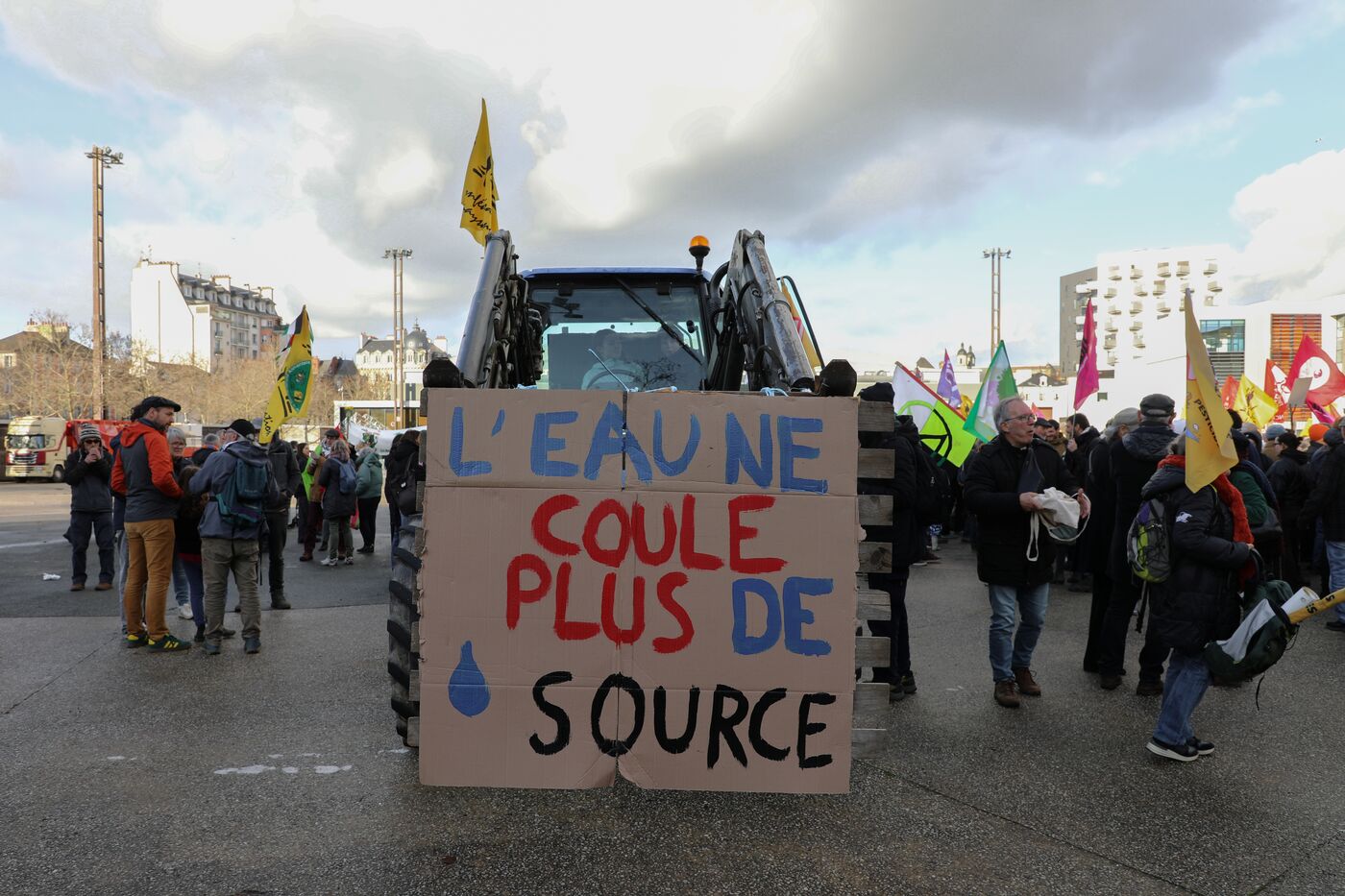 Manifestation à Rennes le samedi 10 janvier de plusieurs collectifs agricoles dont la confédération paysanne d'Ille et Vilaine, la fédération de la pêche et le collectif de soutien aux victimes des pesticides pour réclamer le remaniement du texte SAGE établit pour protéger l'eau et lutter contre la pollution de l'eau aux pesticides.