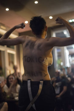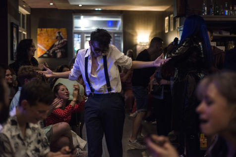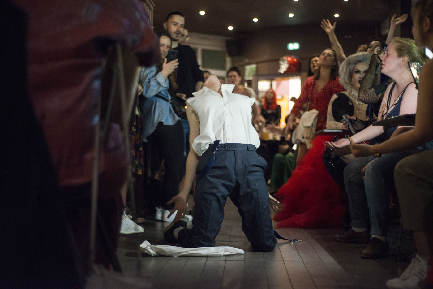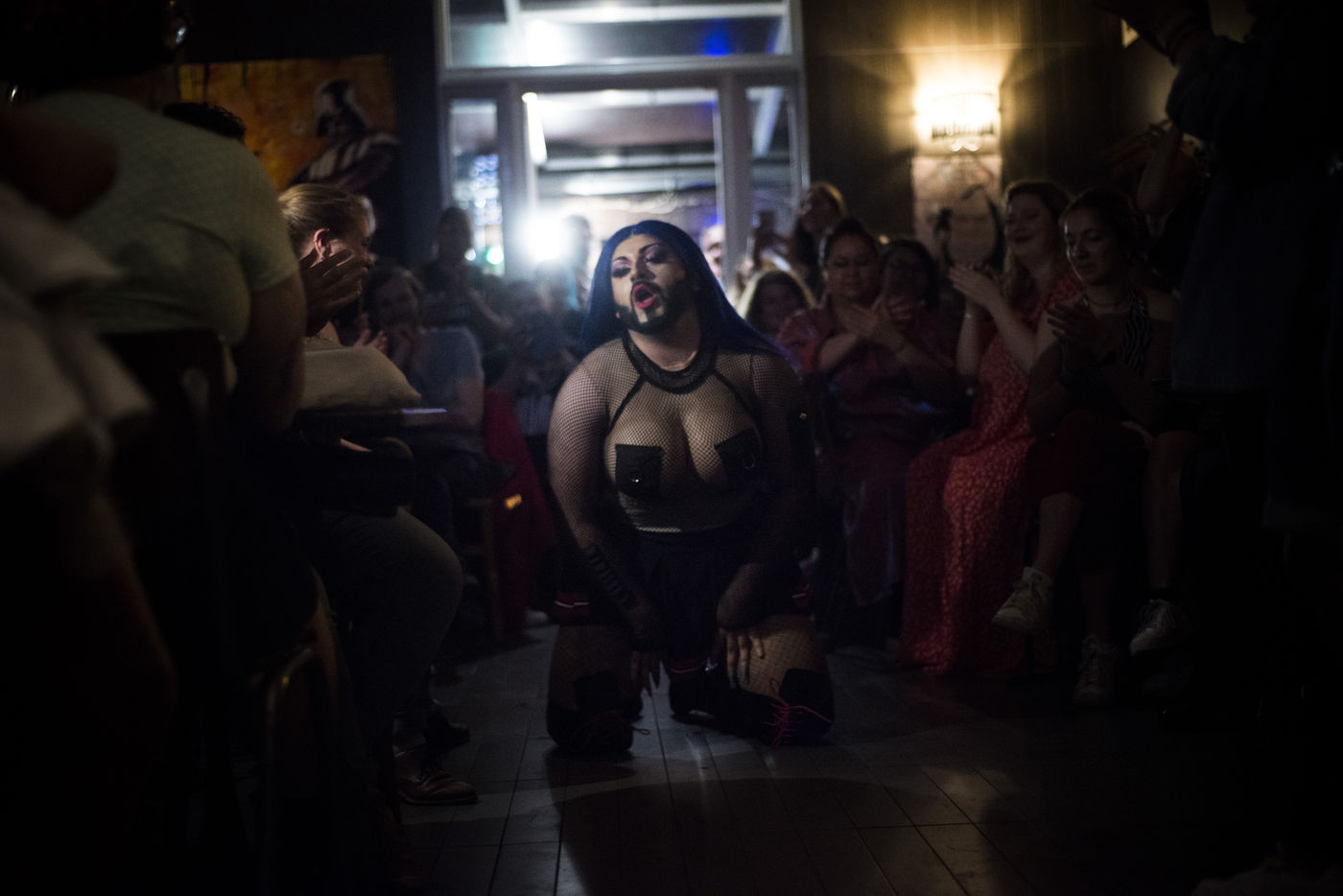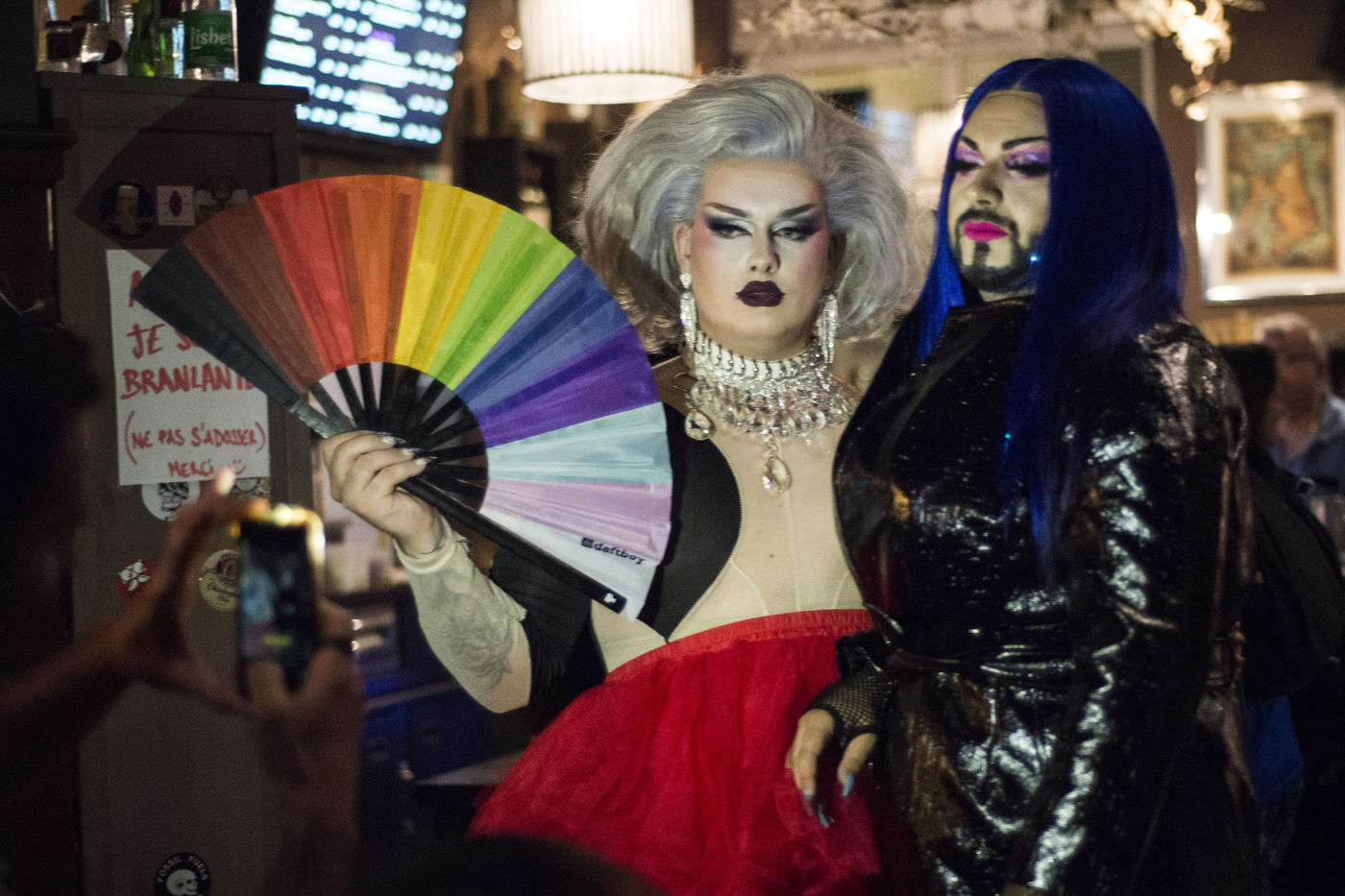 The creative collectif The Coven organised a DragShow at the Cafe Grognon in Strasbourg with drag artists Royniita and Rose Tental and guest artist dragking Helix Sir.