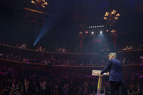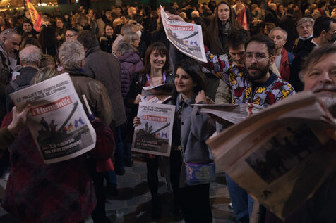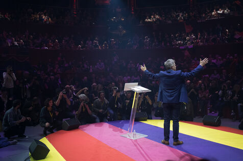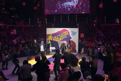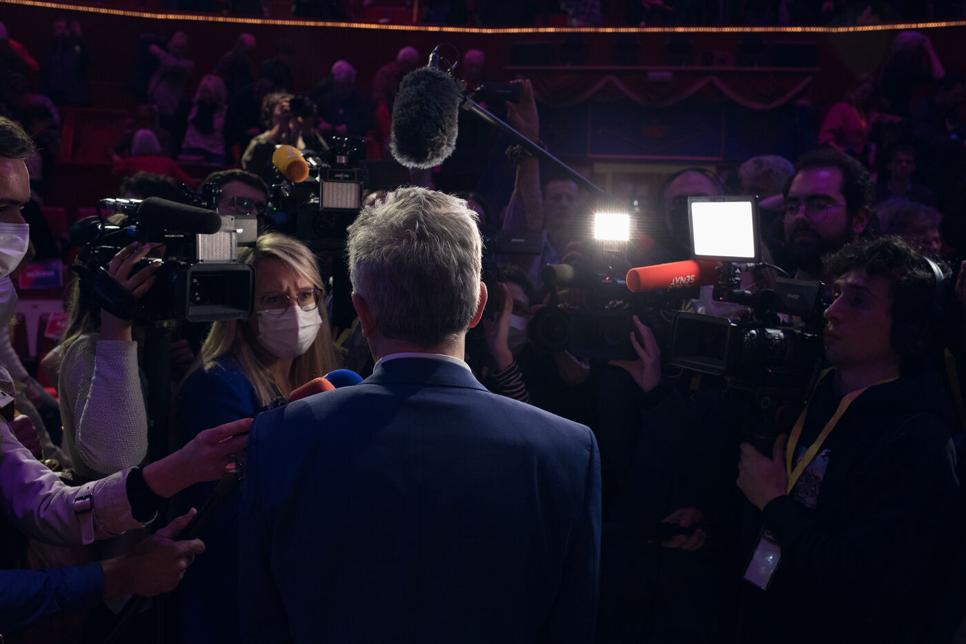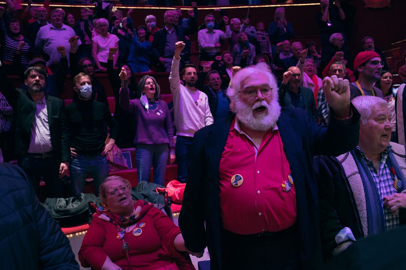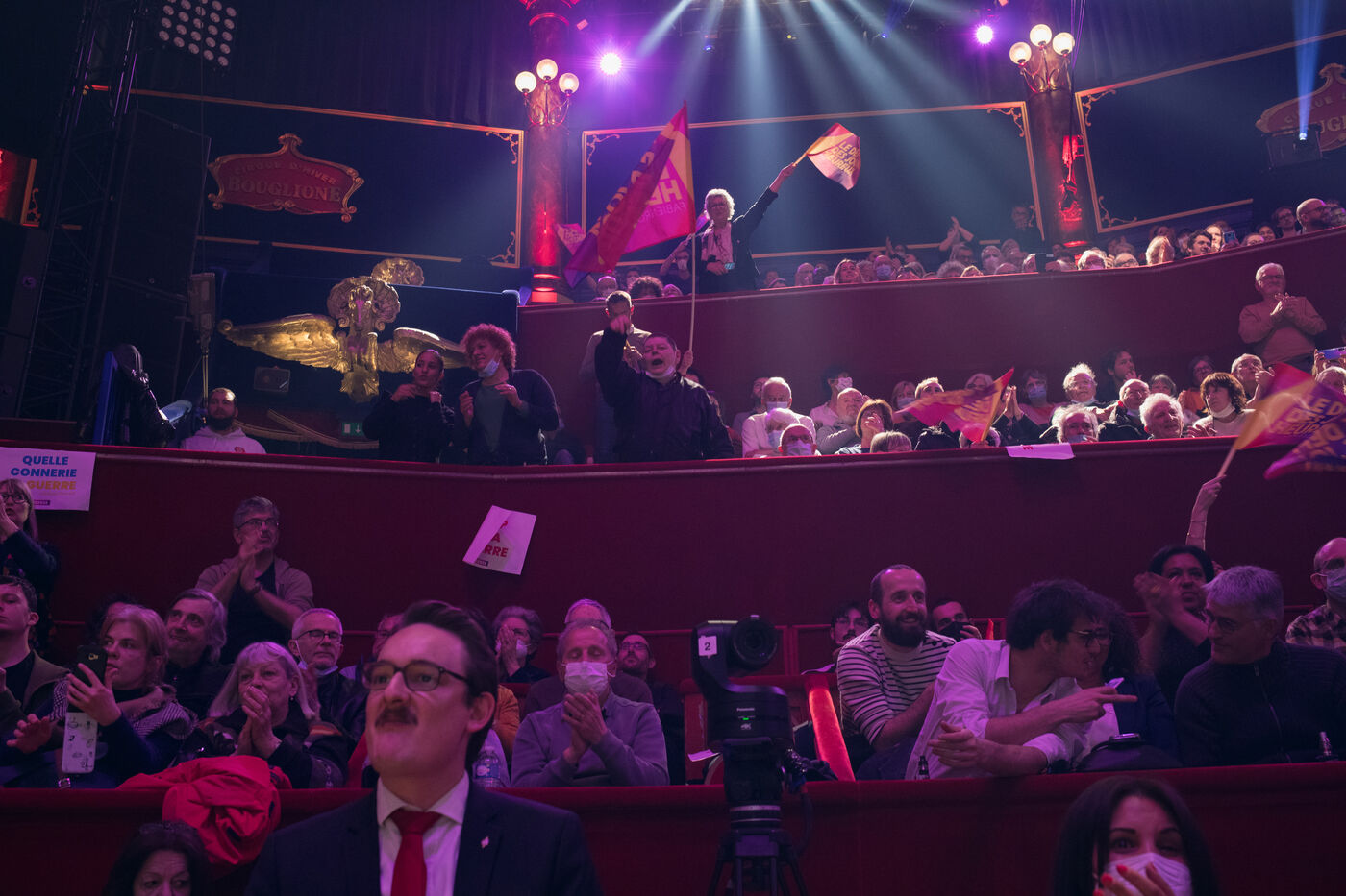 Meeting of Fabien Roussel, leader of the PCF (French Communist Party), at the Cirque d'Hiver for the May 2022 presidential elections, in Paris in France on 10 March 2022.