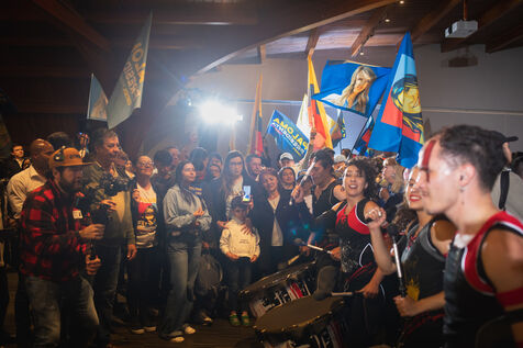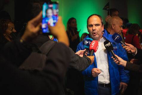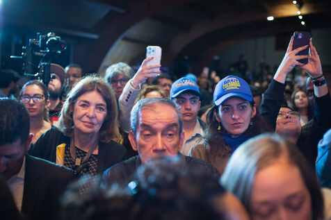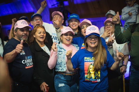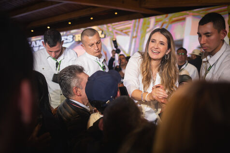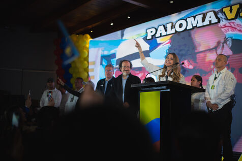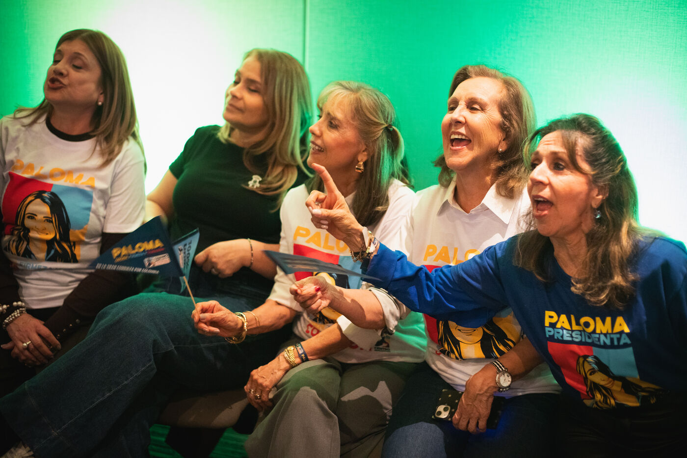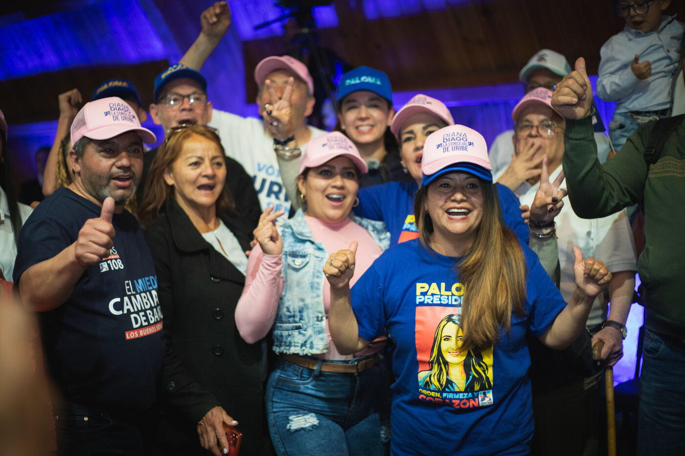 Soirée électorale autour de la sénatrice Paloma Valencia lors des résultats des primaires de la droite, à Bogota, en Colombie le 8 mars 2026. Vainqueur du scrutin, Paloma Valencia est la candidate officielle de la droite aux élections présidentielles colombiennes de 2026.