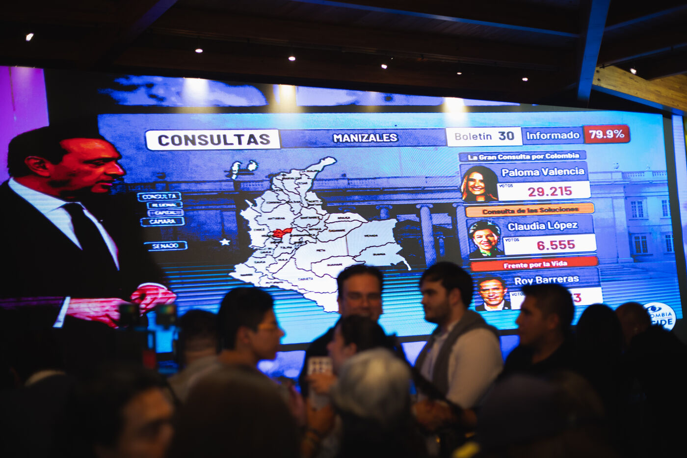 Election night with Senator Paloma Valencia during the results of the right-wing primaries in Bogota, Colombia, on 8 March 2026. Winner of the election, Paloma Valencia is the official candidate of the right wing in the 2026 Colombian presidential elections.