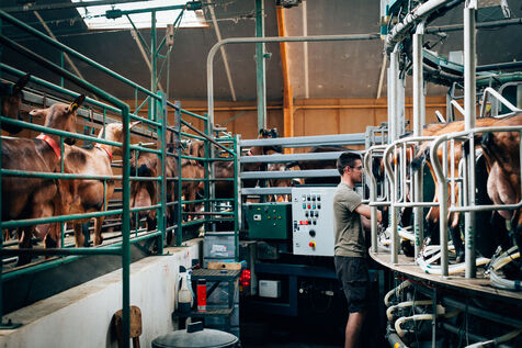 Milking takes place 365 days a year, twice a day, morning and evening, using a 40-place roto (milking robot). All the milk produced is processed into cheese. During the dry period (natural absence of milk), milking is stopped for 2 months.
