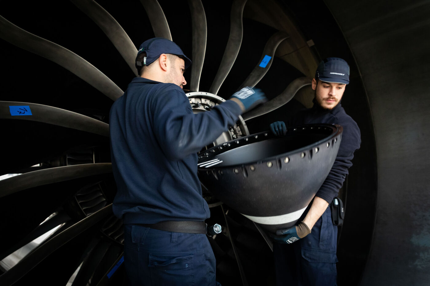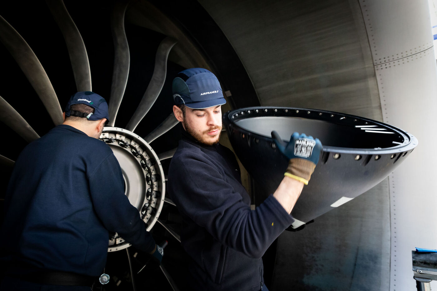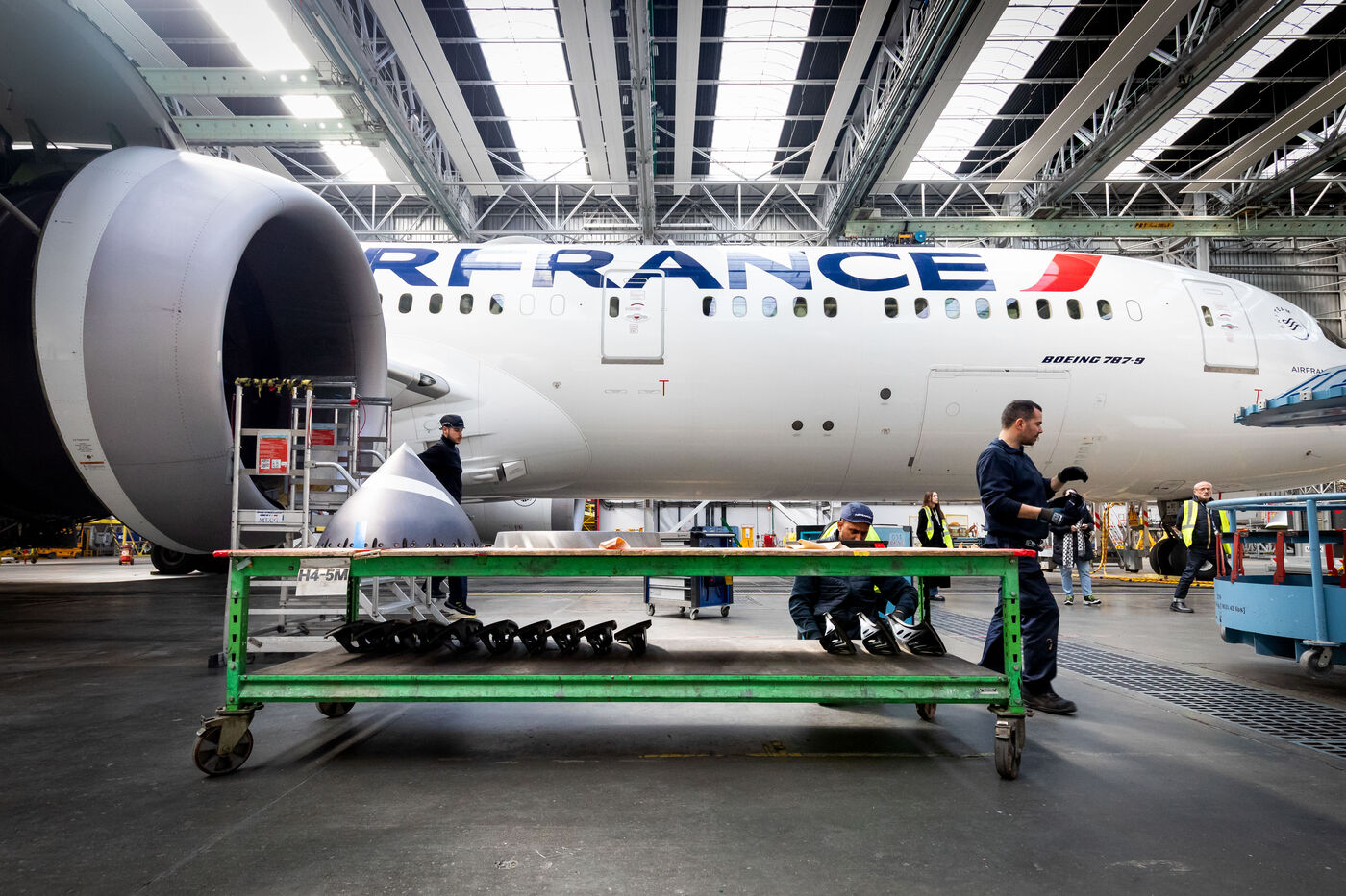 Portrait des mécaniciens de maintenance sur le Boeing B787 Air France