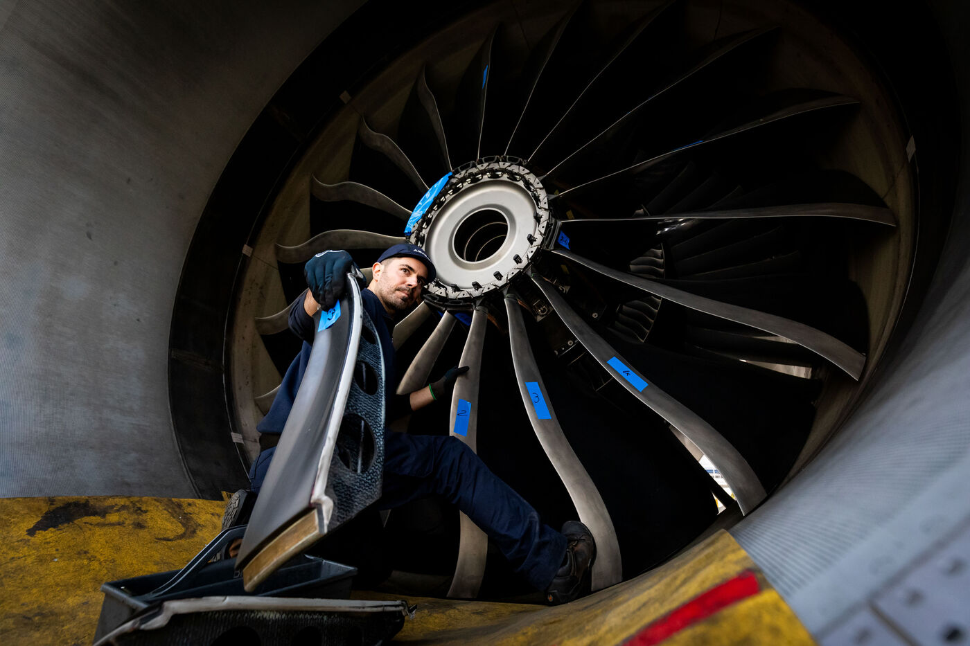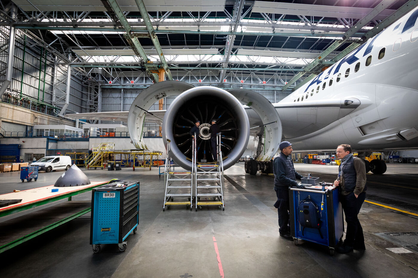 A day with the Air France mechanics who maintain the Boeing B787 in Air France's hangar N°1 at Roissy. Every part of the aircraft is meticulously inspected, and some parts are dismantled (like this engine, to be overhauled and cleaned). Sometimes it's necessary to change parts (in the cabin or on the engines), like changing the window. Each part of the aircraft is visible in a completely unstructured way on a tablet, which simplifies the overall vision of each element and makes it easier to order the parts to be changed. Each gesture must be extremely rigorous and precise.