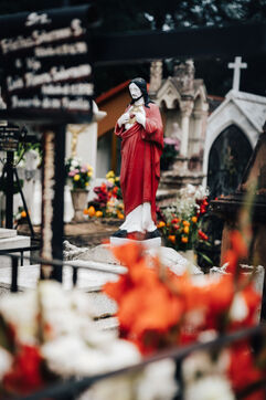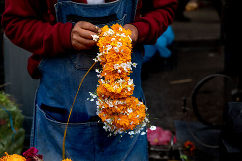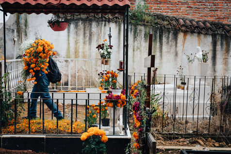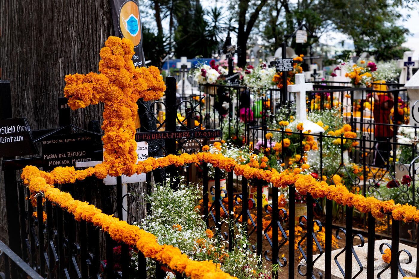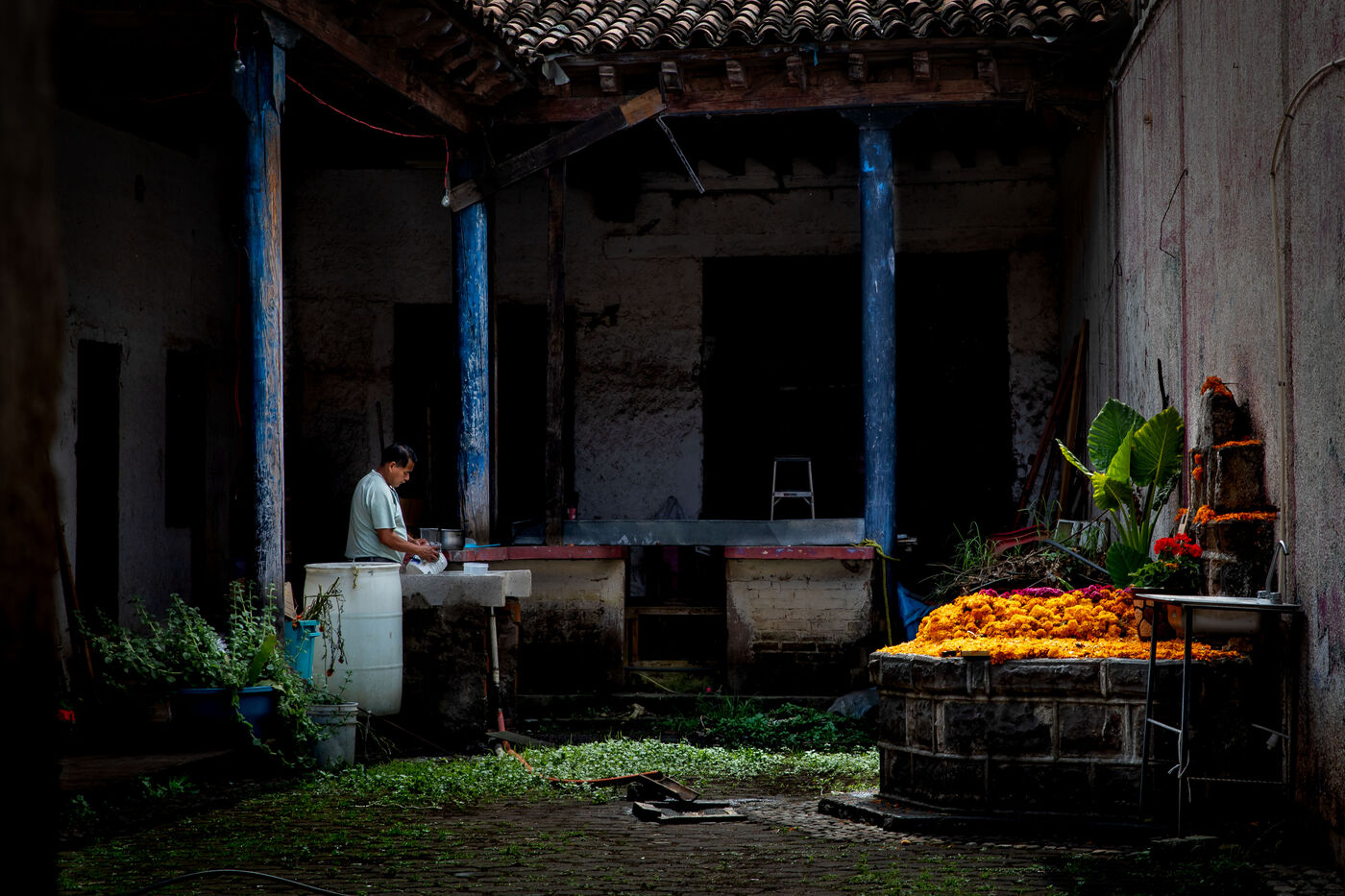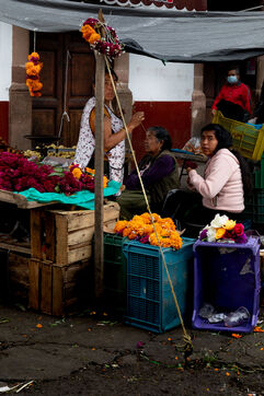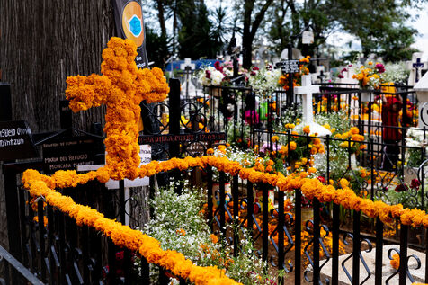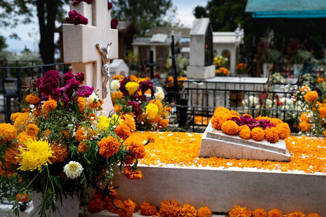 The flowers most commonly used to decorate these altars are marigolds (Calendula officinalis). Scattered from the altar to the graves, the marigold petals guide wandering souls to a place of rest. The smoke from copal incense, made from tree resin, conveys praise and prayers and purifies the area around the altar.