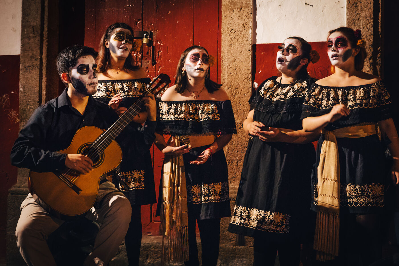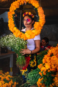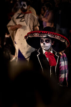 Les festivités de "Los Dias de Los muertos ont lieu les deux premiers jours de novembre dans une explosion de couleurs et de joie de vivre. Le thème reste la mort mais il s'agit de manifester de l'amour et du respect envers les membres de la famille disparus. Dans les villes et les villages du Mexique, les personnes qui participent à cette fête se maquillent et se déguisent, organisent des défilés et des fêtes, chantent, dansent et font des offrandes aux êtres chers disparus.