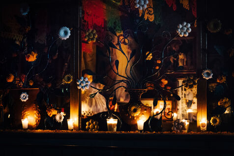 La pièce maitresse de la célébration est un autel ou "ofrenda", construit dans les maisons privées et les cimetières. Ces autels ne sont pas destinés au culte mais à accueillir les esprits qui font leur retour dans le royaume des vivants.Ils sont chargés d'offrandes: de l'eau pour étancher la soif après le long voyage, de la nourriture, des photos de famille et une bougie pour chaque personne décédée. Si l'un des esprits est un enfants il peut y avoir de petits jouets.