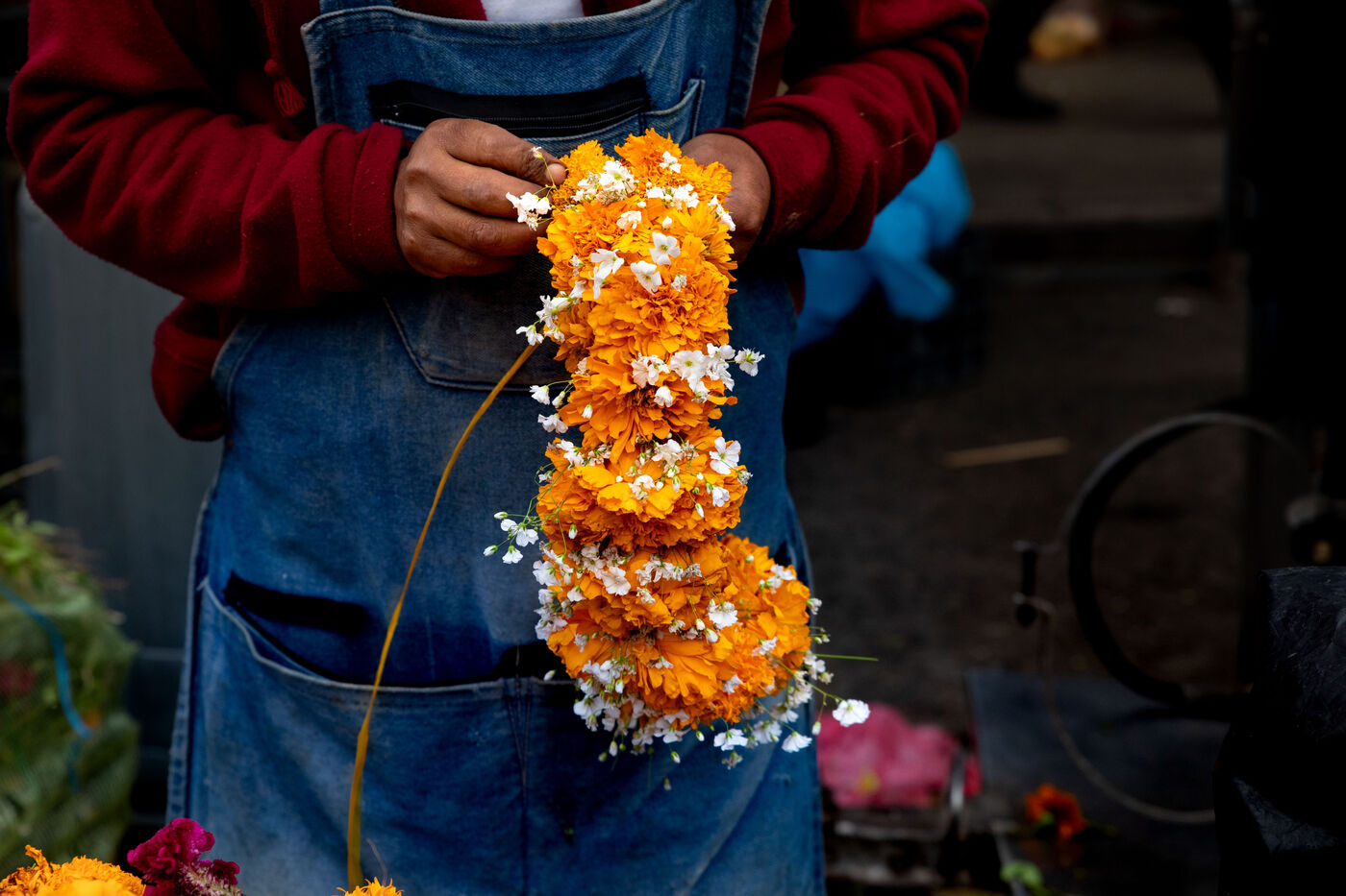 Les fleurs qui sont les plus utilisées pour décorer ces autels sont les soucis "calendula officinalis". Dispersées de l'autel aux tombes, les pétales de soucis guident les âmes errantes vers un lieu de repos. La fumée de l'encens de copal, fabriqué partir de résine d'arbre transmet les louanges et les prières et purifie la zone autour de l'autel.