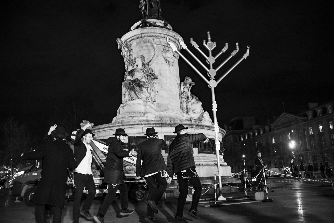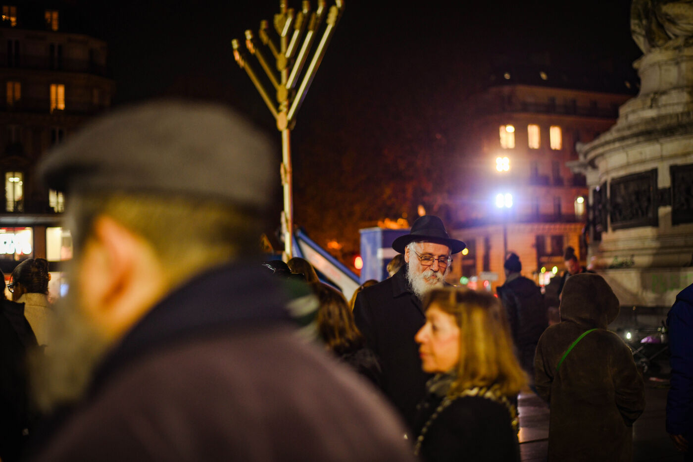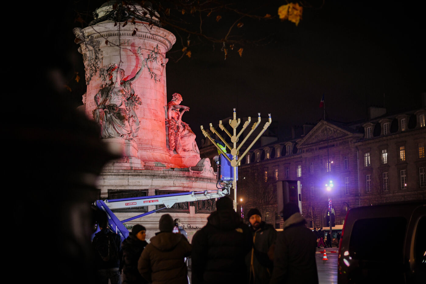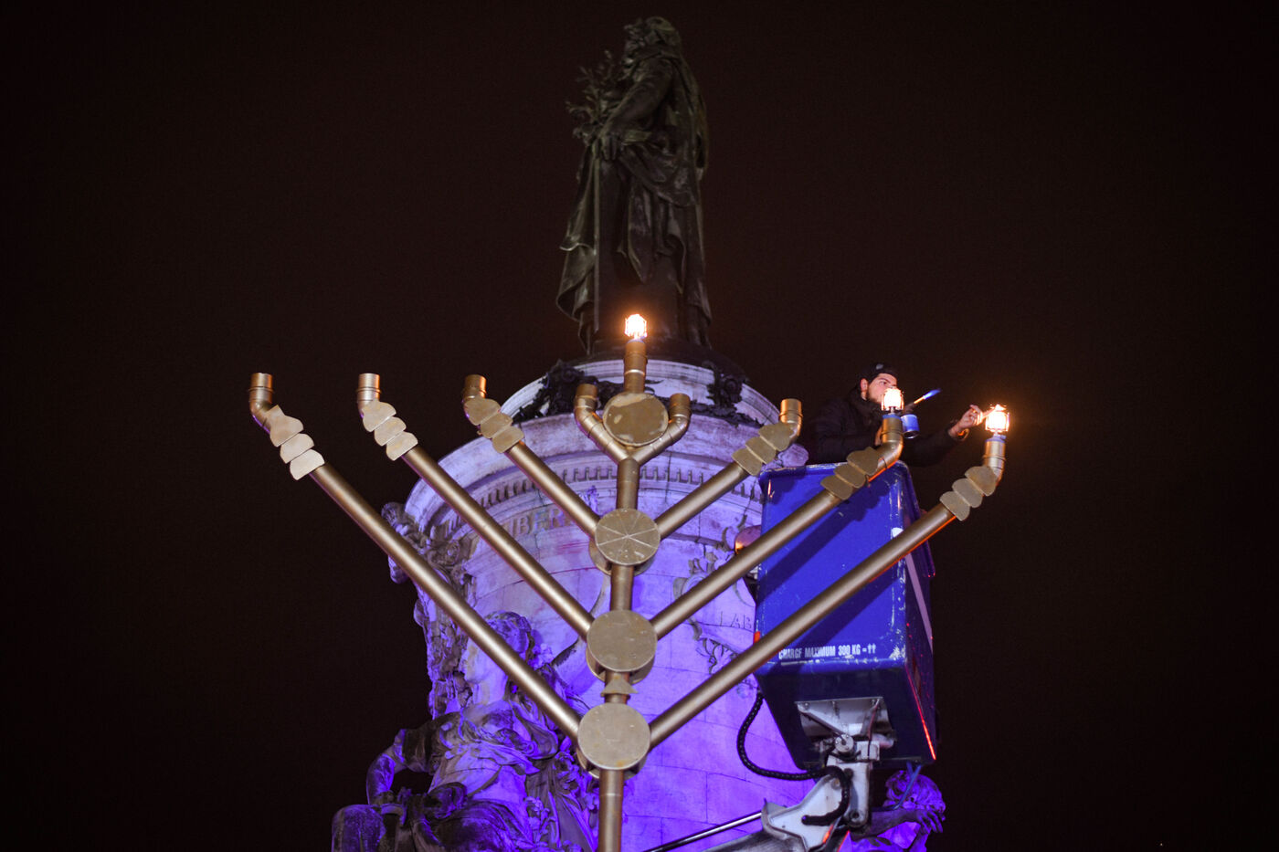 Hanoucca est une fête juive qui commémore la réinauguration du Temple de Jérusalem et le miracle de la fiole d’huile. À Paris, la célébration publique de Hanoucca se déroule sur la place de la République, où la menorah est allumée en présence de la communauté juive, de responsables associatifs et de passants.