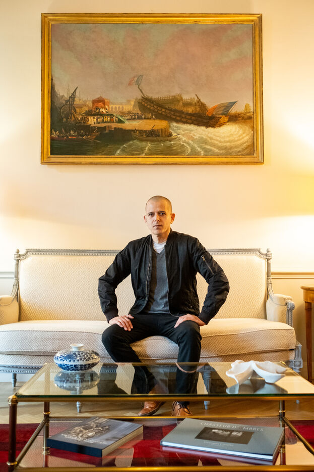 Portrait of the Moroccan writer Abdellah Taïa at the residence of the French Embassy in Brussels on the occasion of the presentation of the Belgian Goncourt Prize.