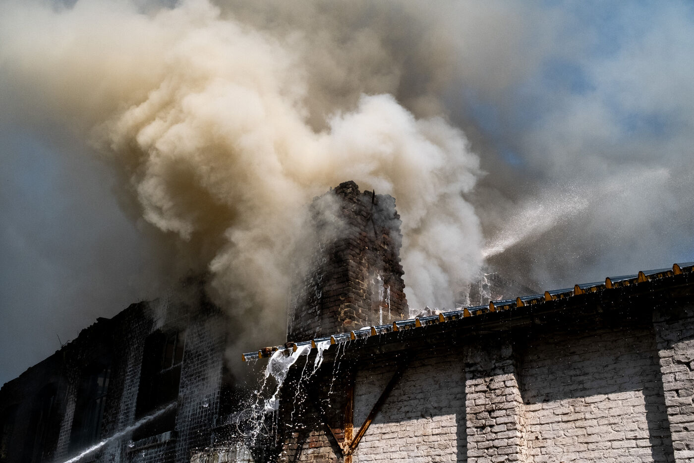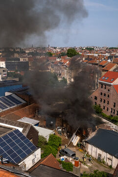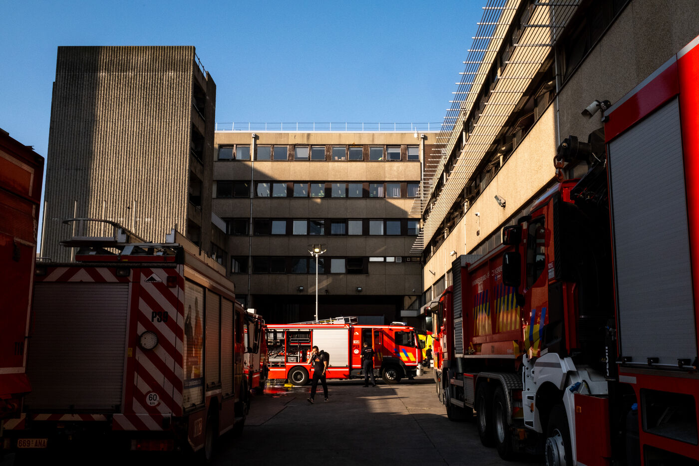 Late in the afternoon, the fire alarm echoes over the station loudspeakers. A cold, pre-recorded deep voice announces, “Alert. Fire response.” The sound of boots immediately rings through the building. It only takes a few short minutes for them to reach the fire, located a kilometer from the station, on Chaussée d’Anvers. From the platform, 30 meters high, they discover a brick warehouse filled with black smoke; the vermilion red of the blaze is clearly visible. The water hoses go into action, supported by a second team equipped with a fire engine from the nearby station. The smoke begins to clear, the fire is brought under control but continues to burn, as does the mystery surrounding its cause. No one seems able to clearly say what this warehouse contains.