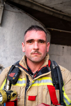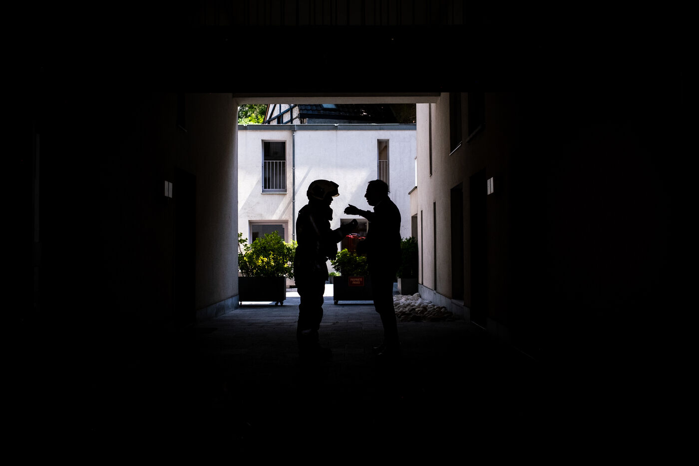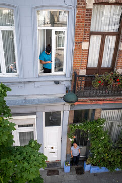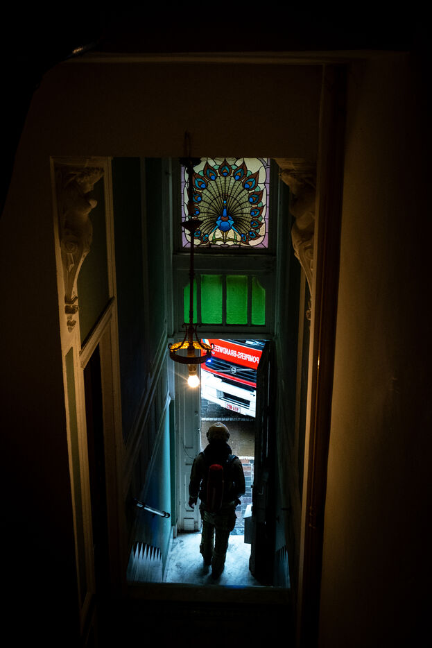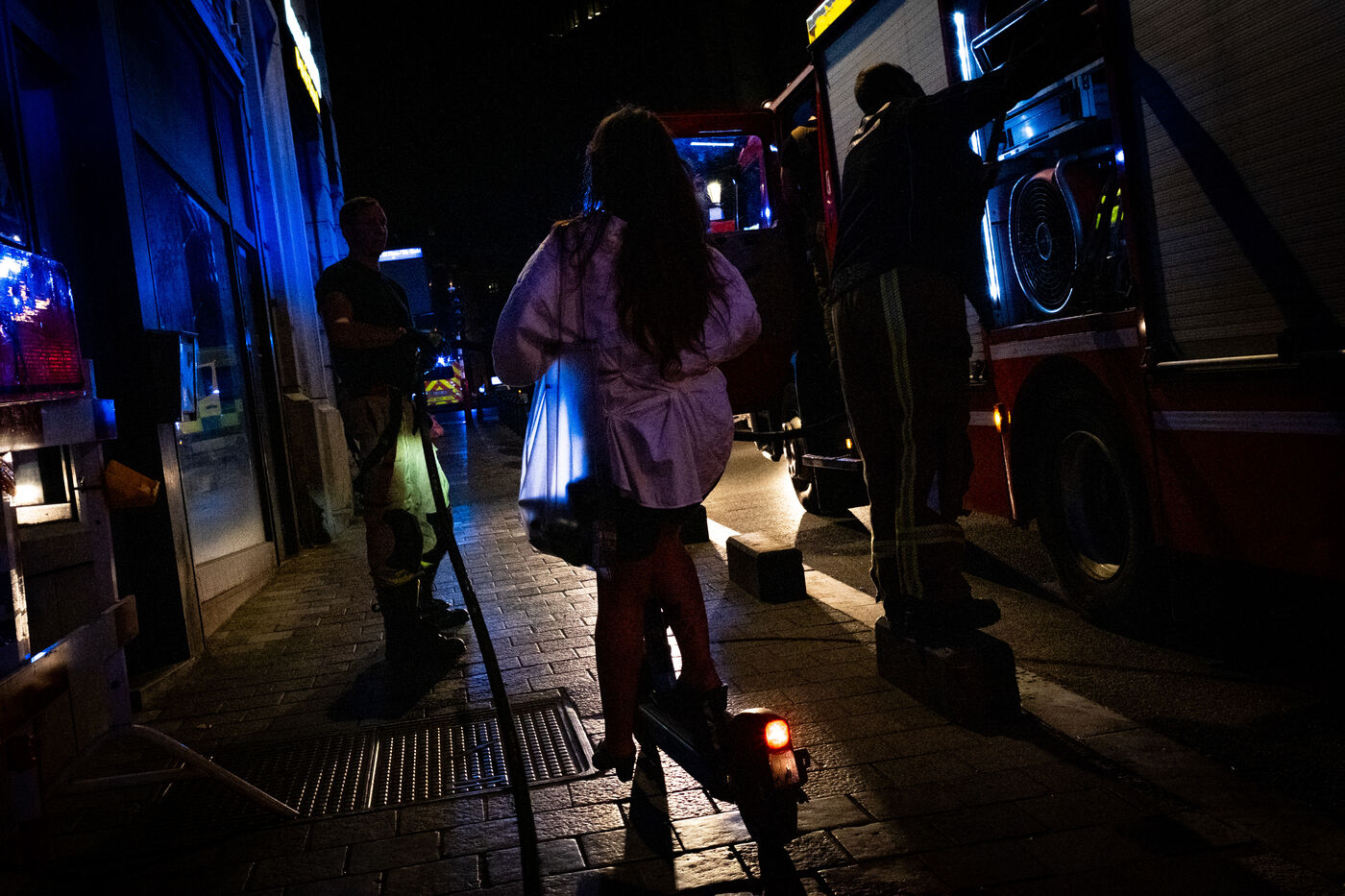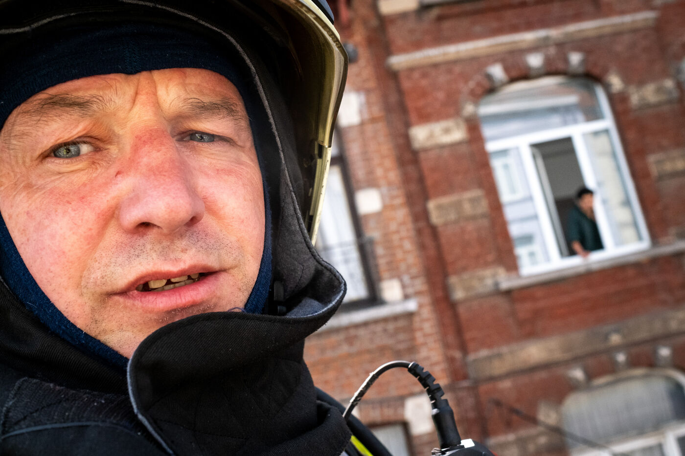 Officer Jamart is the last one on the scene, handling the final details with the police. That is when a man in his sixties, wearing a blue-and-white striped shirt tucked into his trousers, arrives. It is the mayor of Berchem-Sainte-Agathe, who has come to get information. He seems annoyed by the incorrect information he received about the fire’s location. The officer gives his conclusions. “We were confronted with a violent fire. We evacuated seven people, who were taken to hospital for smoke inhalation. The stairwell is full of soot and unusable. The first floor is uninhabitable; the electricity and gas have been shut off. The second and third floors are also affected. We advised the owners to bring in a cleaning company. Finally, rehousing is being organized: according to the police, the residents will be taken in by their families.”