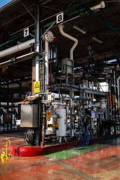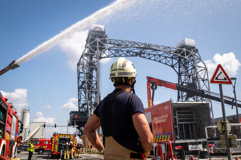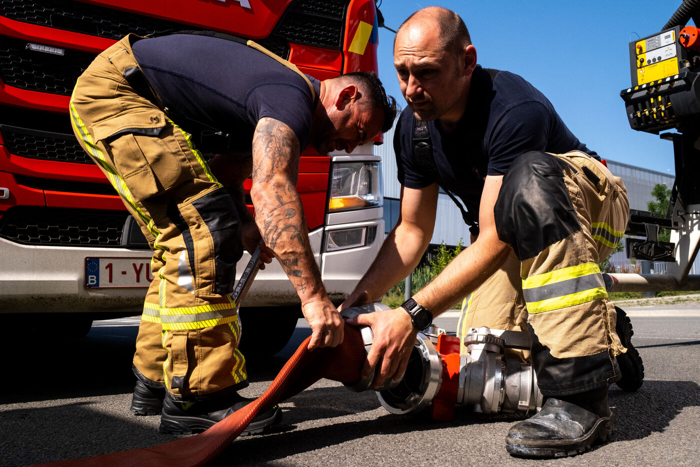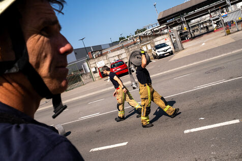 Le lundi suivant, un exercice est mené dans un dépôt de carburant sur le site de TotalEnergies, au Port de Bruxelles, le long du canal de Willebroek. Le caporal Luc Van Ussel explique : « L’objectif du jour est de tester l’alimentation en eau et la sécurité autour des tanks de fuel, certaines dépassant 30 000 litres. Ce sont de gros bassins qui font plusieurs mètres de hauteur et de circonférence. »