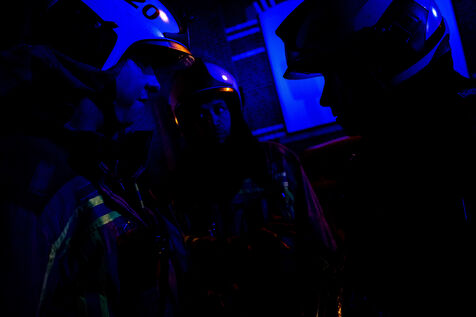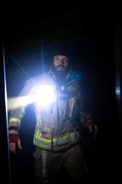 Officer Jalet supervises the ventilation, crucial to avoid feeding any remaining hotspots: “We’re going to use huge fans to clear the smoke from the parking garage, but first we have to make sure there’s no possible source of reignition left. Otherwise, the ventilation will only fan it.” The firefighters’ silhouettes once again emerge through the dense veil of smoke. They come back out and give the signal to the officer. The roar of the fans connected to generators makes a deafening racket.