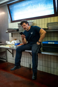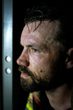 Back at the station, Sergeant Johny is cooking a paella to celebrate his promotion. Around 8 p.m., he begins serving the first plates to the hungriest diners. While some are still peeling their prawns, the ceiling lights suddenly turn red, plunging the mess hall into total silence. A second later, another alarm sounds. “Alert. Fire response.” All the big lads abandon their plates and rise in one motion to head for the trucks, sliding down the Halligan bars.